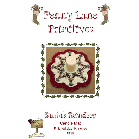 Regular price $10.00 USDRegular priceUnit price / perSale price $10.00 USDSanta's Reindeer Christmas Penny Rug Candle Mat PLP-116e - Downloadable Pattern