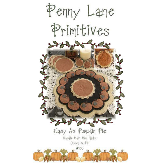 Regular price $10.00 USDRegular priceUnit price / perSale price $10.00 USDEasy as Pumpkin Pie Penny Rug Candle Mat Set PLP-136e - Downloadable Pattern