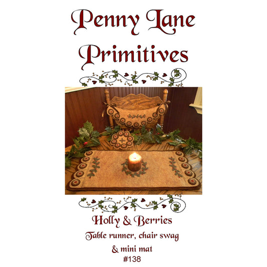 Regular price $10.00 USDRegular priceUnit price / perSale price $10.00 USDHolly & Berries Penny Rug Runner, Chair Swag & Mini Mat PLP-138e - Downloadable Pattern