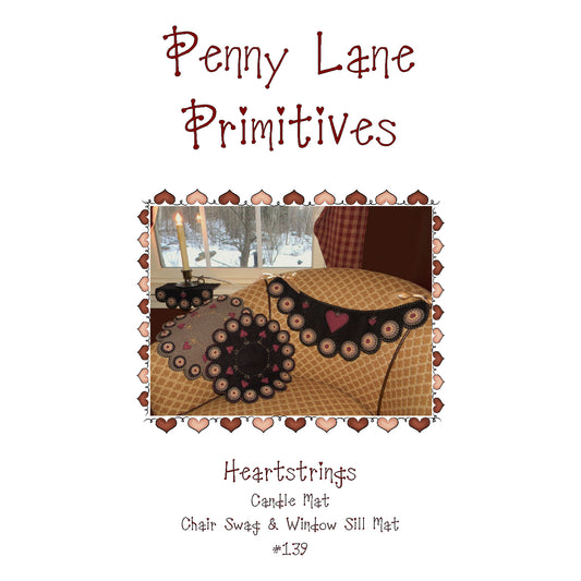 Regular price $10.00 USDRegular priceUnit price / perSale price $10.00 USDHeartstrings Penny Rug Candle Mat, Chair Swag & Windowsill Mat PLP-139e - Downloadable Pattern