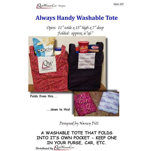 Regular price $10.00 USDRegular priceUnit price / perSale price $10.00 USDAlways Handy Washable Tote NDD-107e - Downloadable Pattern