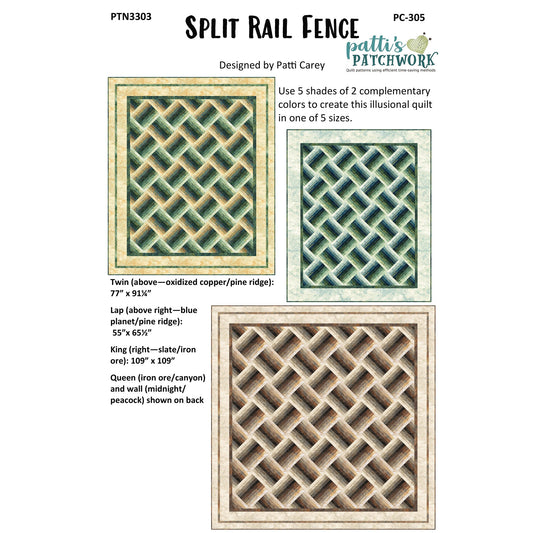 Regular price $10.00 USDRegular priceUnit price / perSale price $10.00 USDSplit Rail Fence Quilt Pattern PC-305 - Paper Pattern