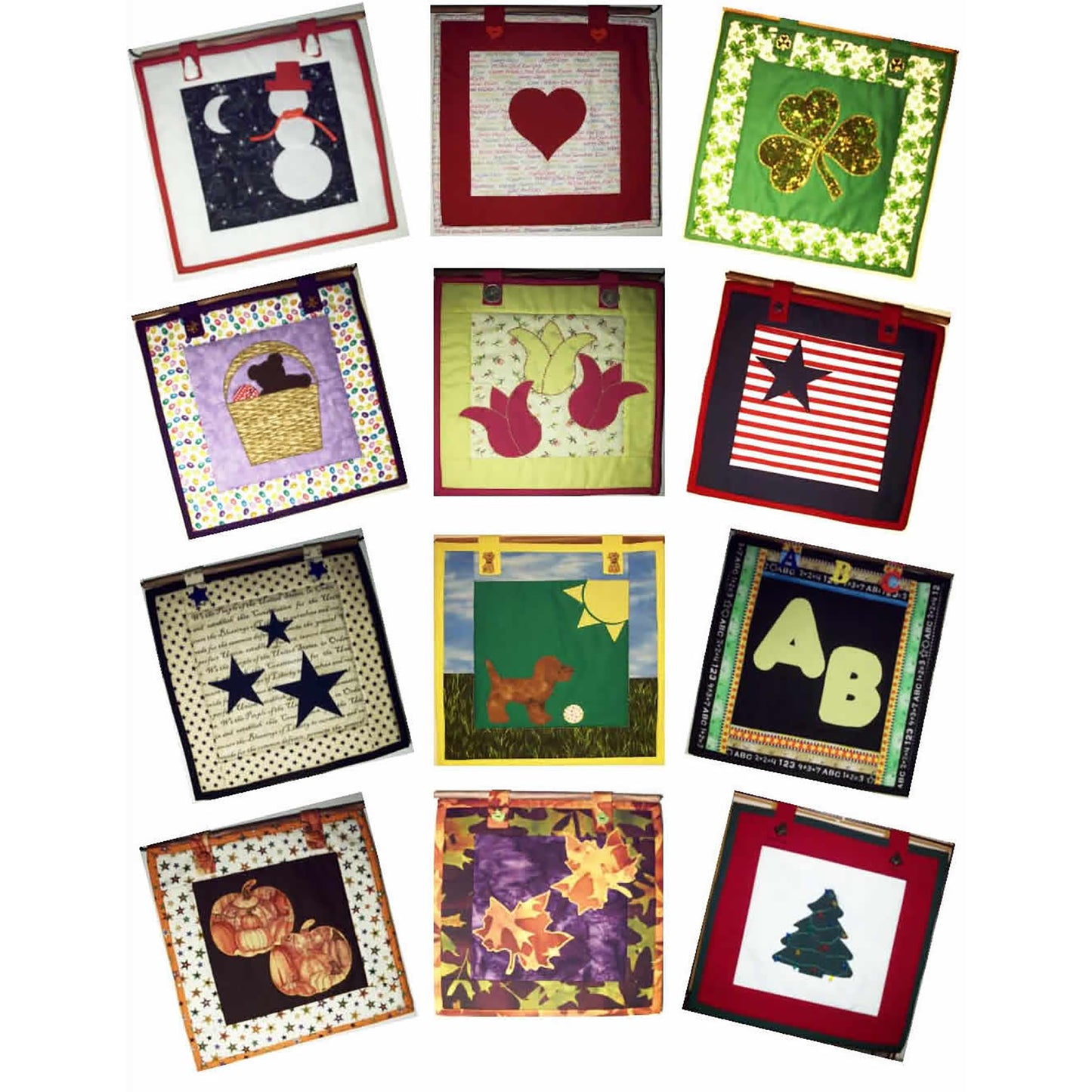 The 12 Months of 12" x 12" Quilts pattern give you a 12" x 12" quilt for each month. These wall hangings are a great way to use up some of your stash. Let your creativity shine with buttons and other embellishments.