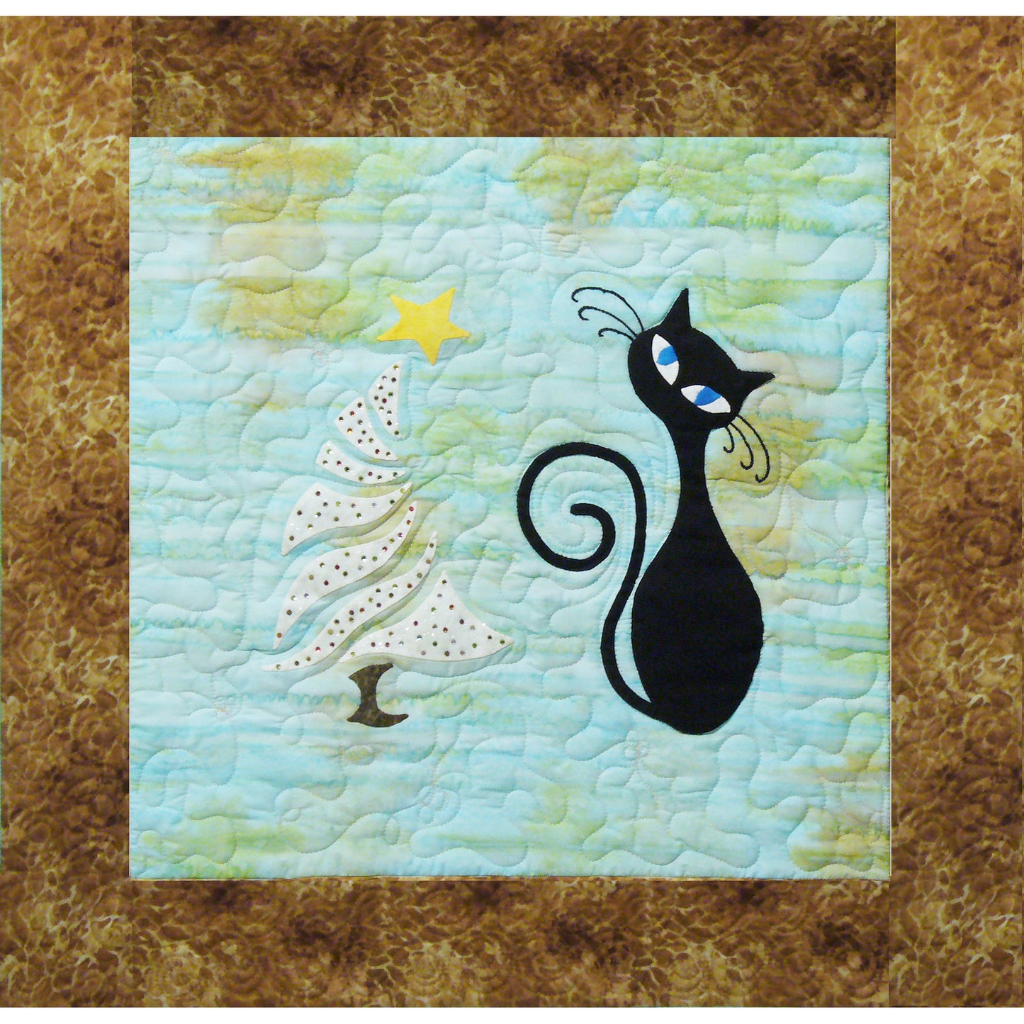 Chris the cat had a lot of fun decorating his Christmas tree. Now it sparkles all over in this fun Kitty Christmas wall hanging pattern.