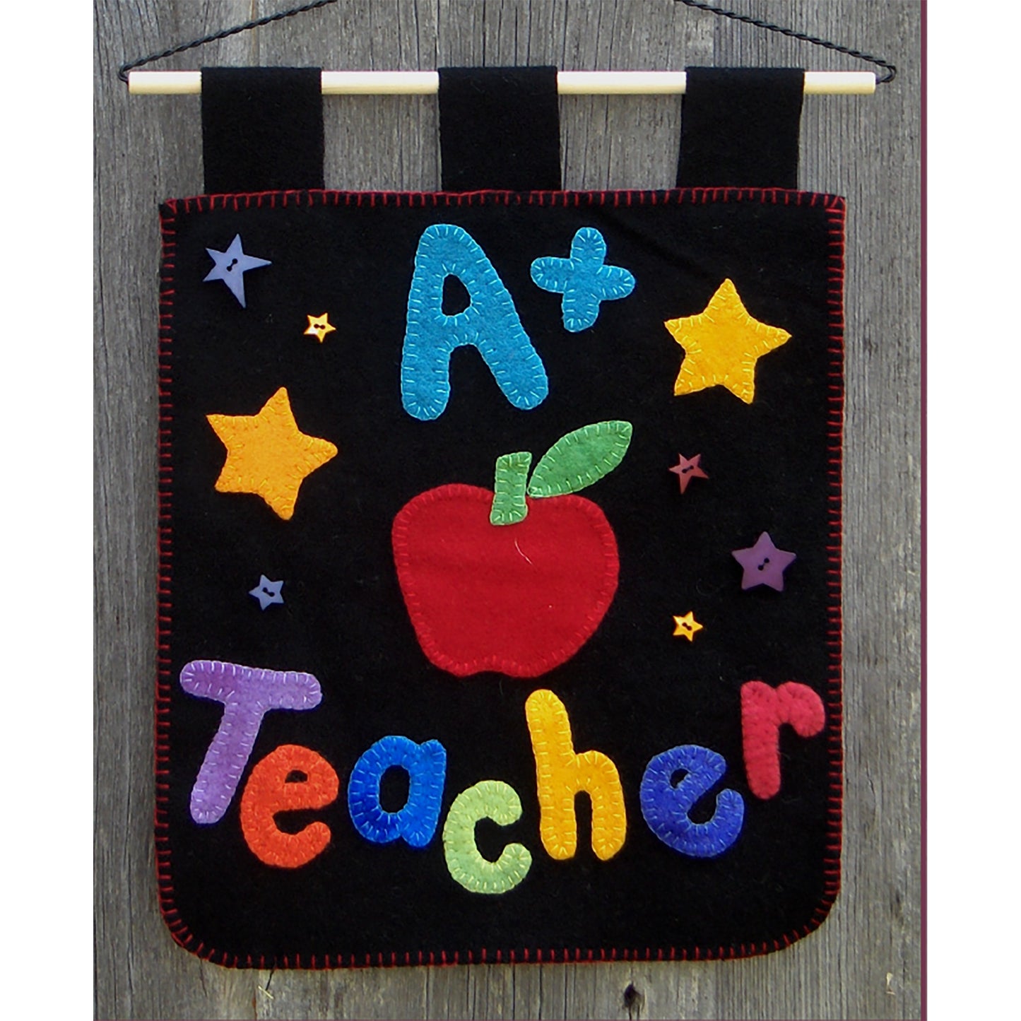 Show a great teacher that he or she is appreciated! This fast and easy felted wool banner pattern is sure to be a welcomed Christmas or end-of-the-year present for a hard working teacher. Felted wool is easy to work with and since the whole wall hanging can be completed by hand, it makes a great take-along project.
