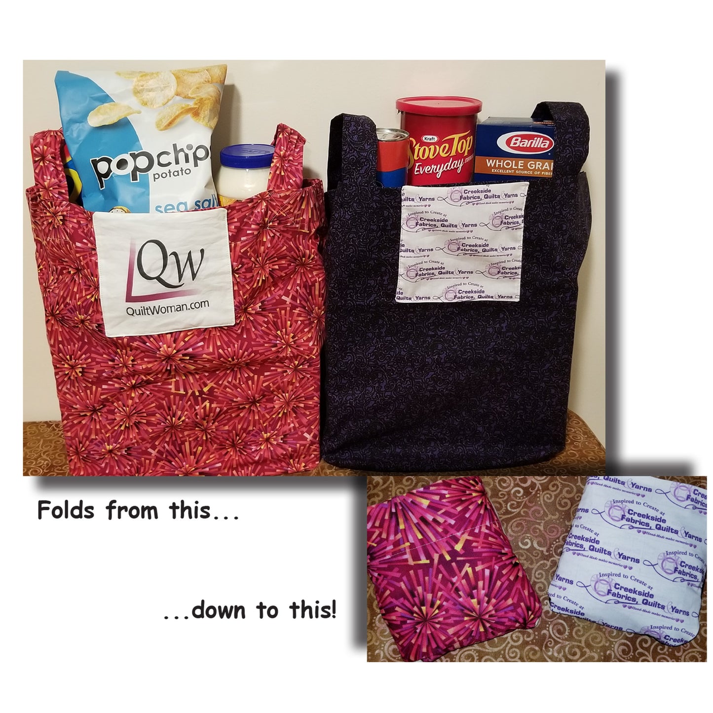 Always Handy Washable Tote pattern makes a tote that folds into it's own pocket. Keep one in your purse, car, etc. Be Green by using it at the grocery store instead of "paper or plastic". The tote is sturdy and folds down into a convenient size when not in use. Perfect not only for shopping, but also for travel, craft projects and more! This pattern only uses 1 yard of fabric!