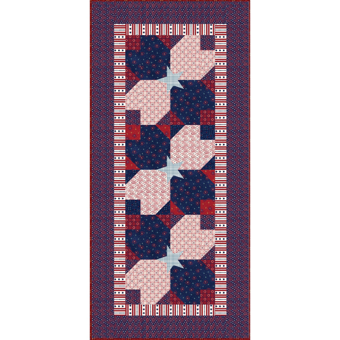 Create a stunning 45" x 21" patriotic quilt runner with the American Dream pattern by Matthew Pridemore of The Whimsical Workshop. Perfect for advanced/confident beginners, this vibrant design features pieced blocks and small appliqué stars.