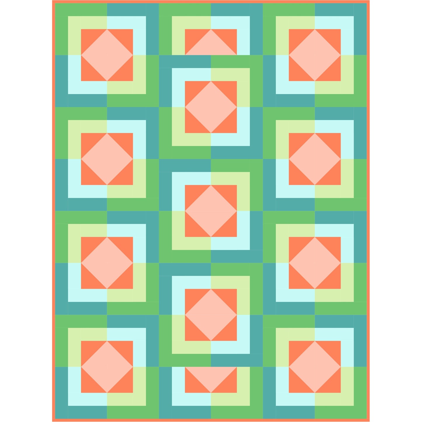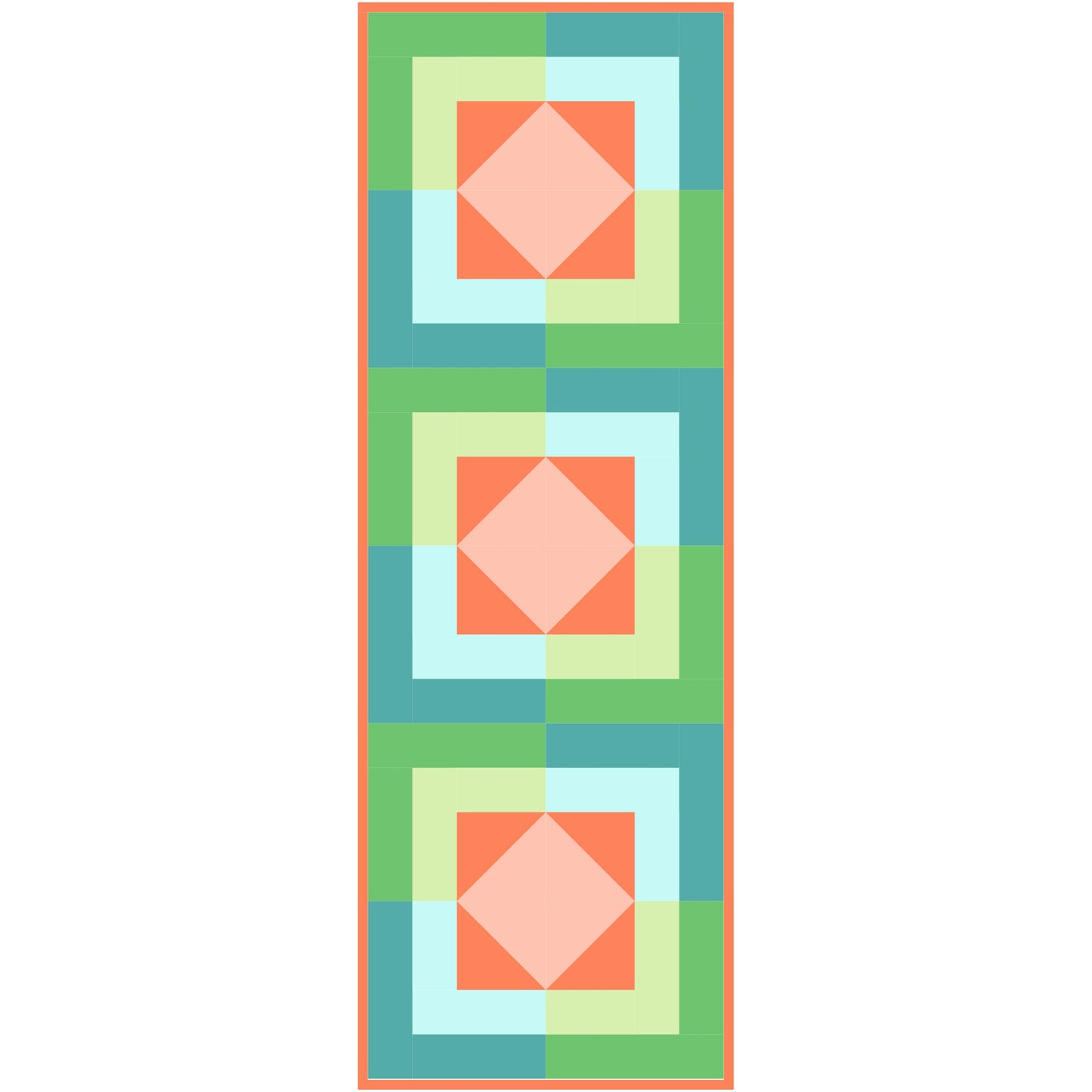 Pattern to make either a lap quilt or a runner. Several layout options. GO! Friendly pattern.