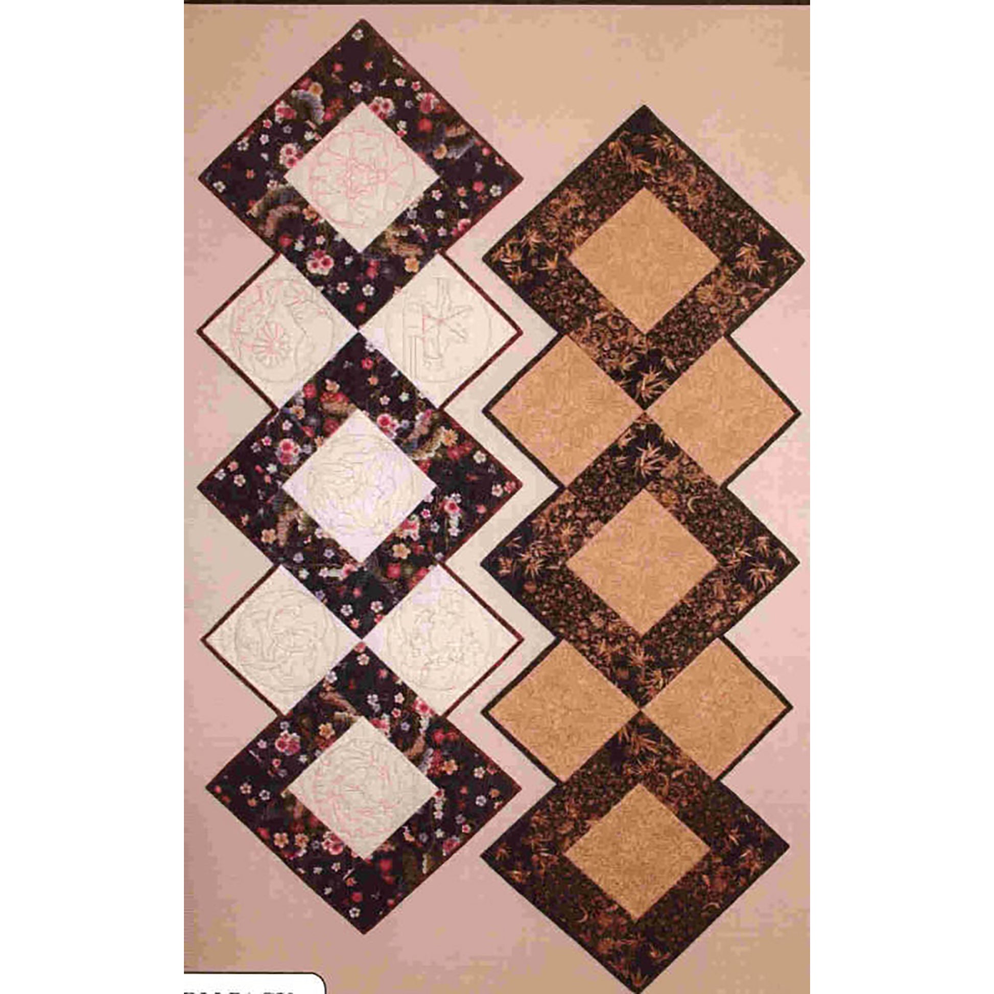 This runner pattern can be done in any color way that you wish to have. Make one for every season and some for friends. You can use a charm pack or a fabulous large Asian print and fussy cut the design. Pieced table runner pattern.