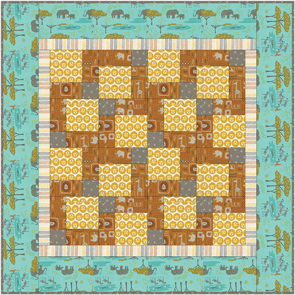 Make a cute small quilt with yardage or use a charm pack for a sweet scrappy look! Simple sewing makes for a fast finish – this quilt makes a great gift and a perfect project for a beginning quilter. Cover Quilt uses “Safari Life” by Stacey Hsu for Moda. Finished quilt is 41 x 41, perfect size for a baby, or a small lap quilt or throw. Great stash project, too!Charm pack friendly quilt pattern. Pieced lap/throw or baby quilt pattern.