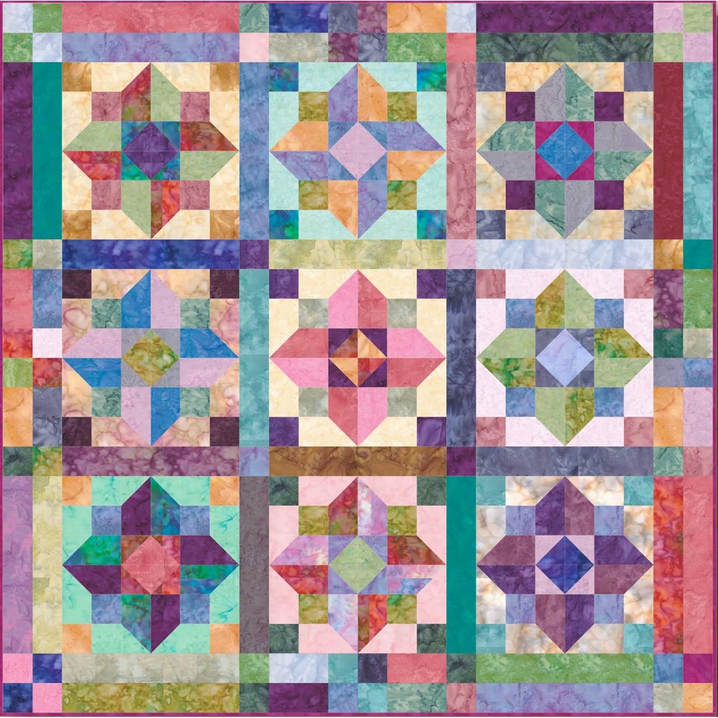 One package of Hoffman's Bali Pops (as shown) or a jelly roll (forty 2 1/2" pre-cut strips) makes this dynamic quilt pattern! Easy Piecing makes it go really fast. This quilt can easily be made larger by purchasing another package of pre-cuts or adding strips from your stash.
