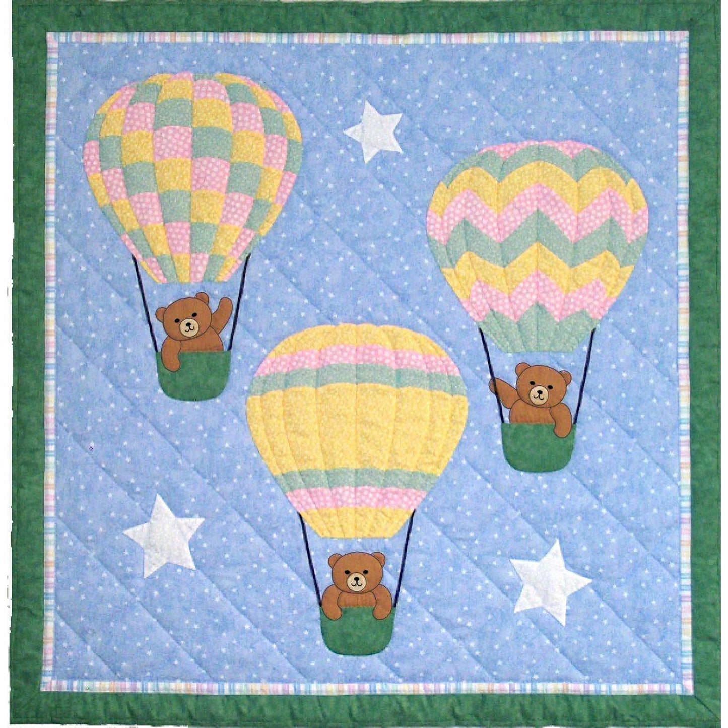 The balloons require three fabrics plus one for the baskets and two for the bears. Three balloon styles included. Stitch as shown or use wider and/or additional borders for a larger finished size. Suitable for hand, machine or fusible appliqué. Hand or machine quilt. Easy enough for a beginner.