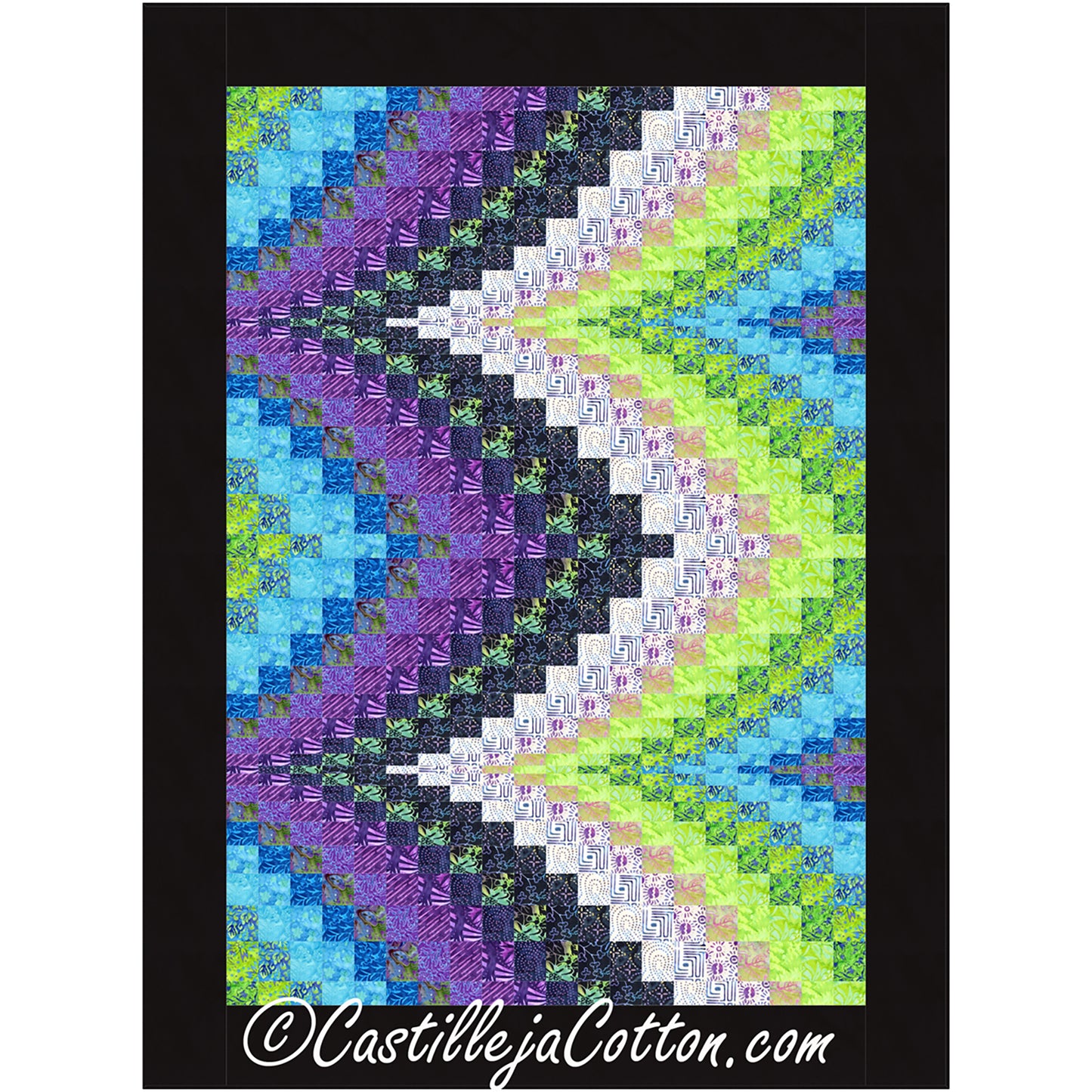 Uses strip piecing technique. 40 2.5" strips of 20 fabrics. Fabric shown in the sample quilt is Timeless Treasures Fabrics Tonga Royalty (Available 2024-12-01). Colors: white, green, blue, purple