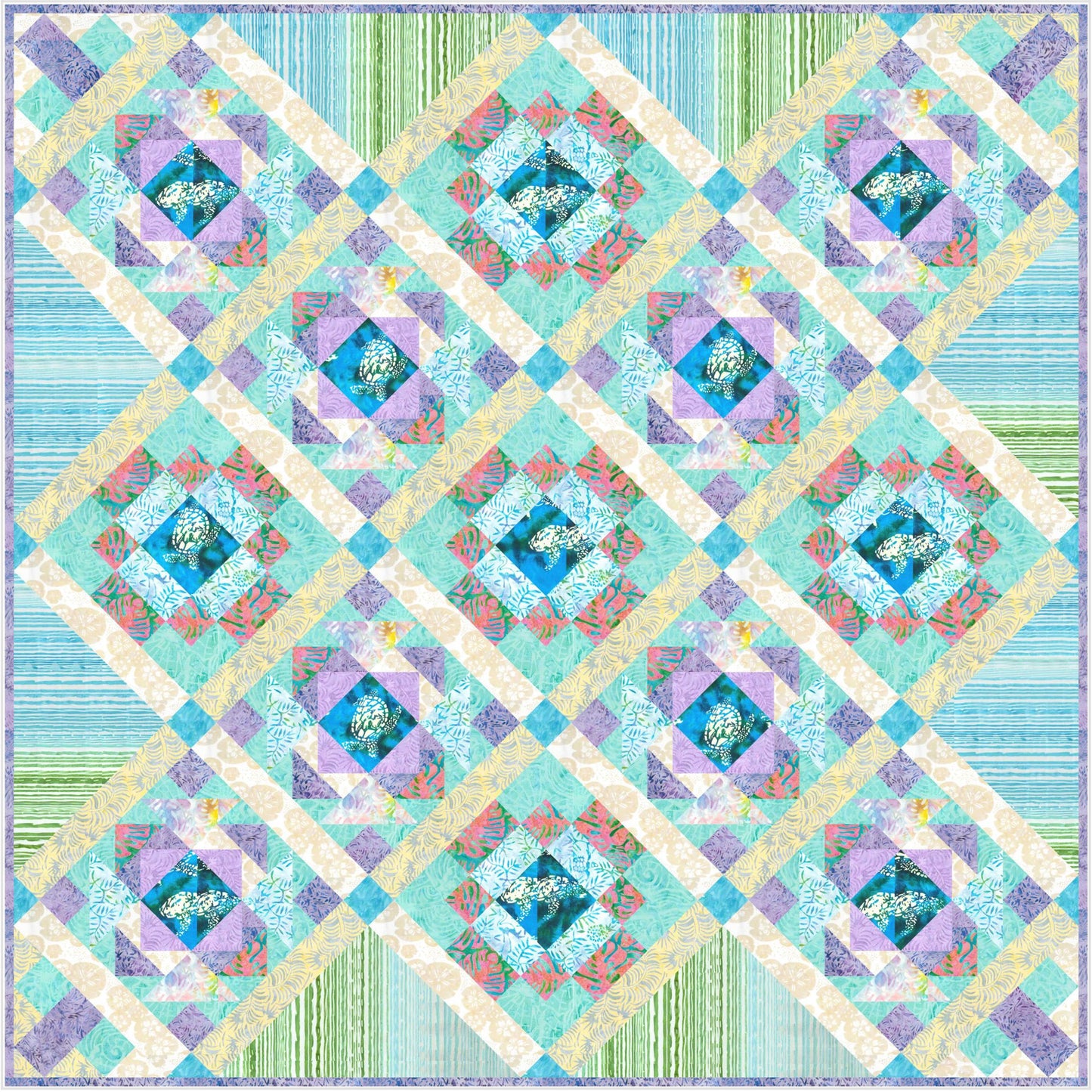 You can practically hear the roar of the ocean! This lap size quilt features fabrics from Linda’s Island Vibes II collection with Banyan Batiks. Step by step instructions and 12-inch blocks make the on-point layout a breeze!