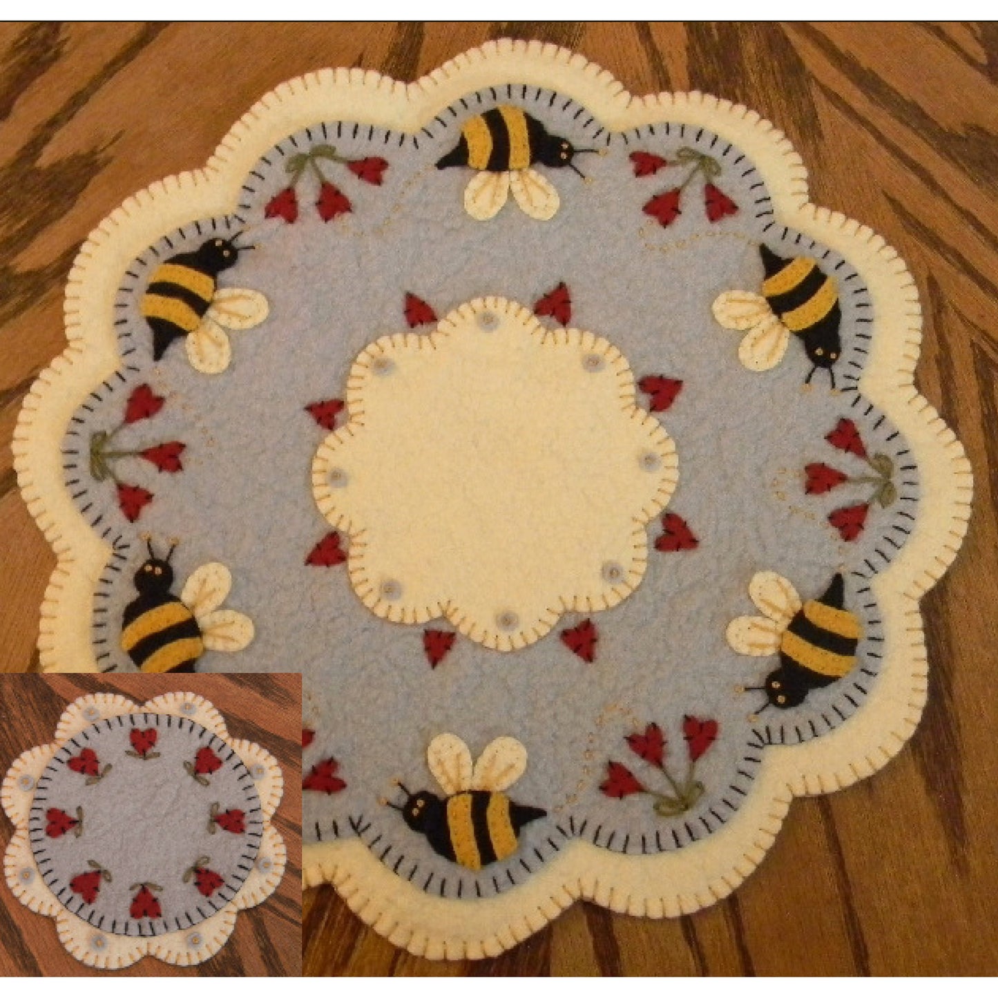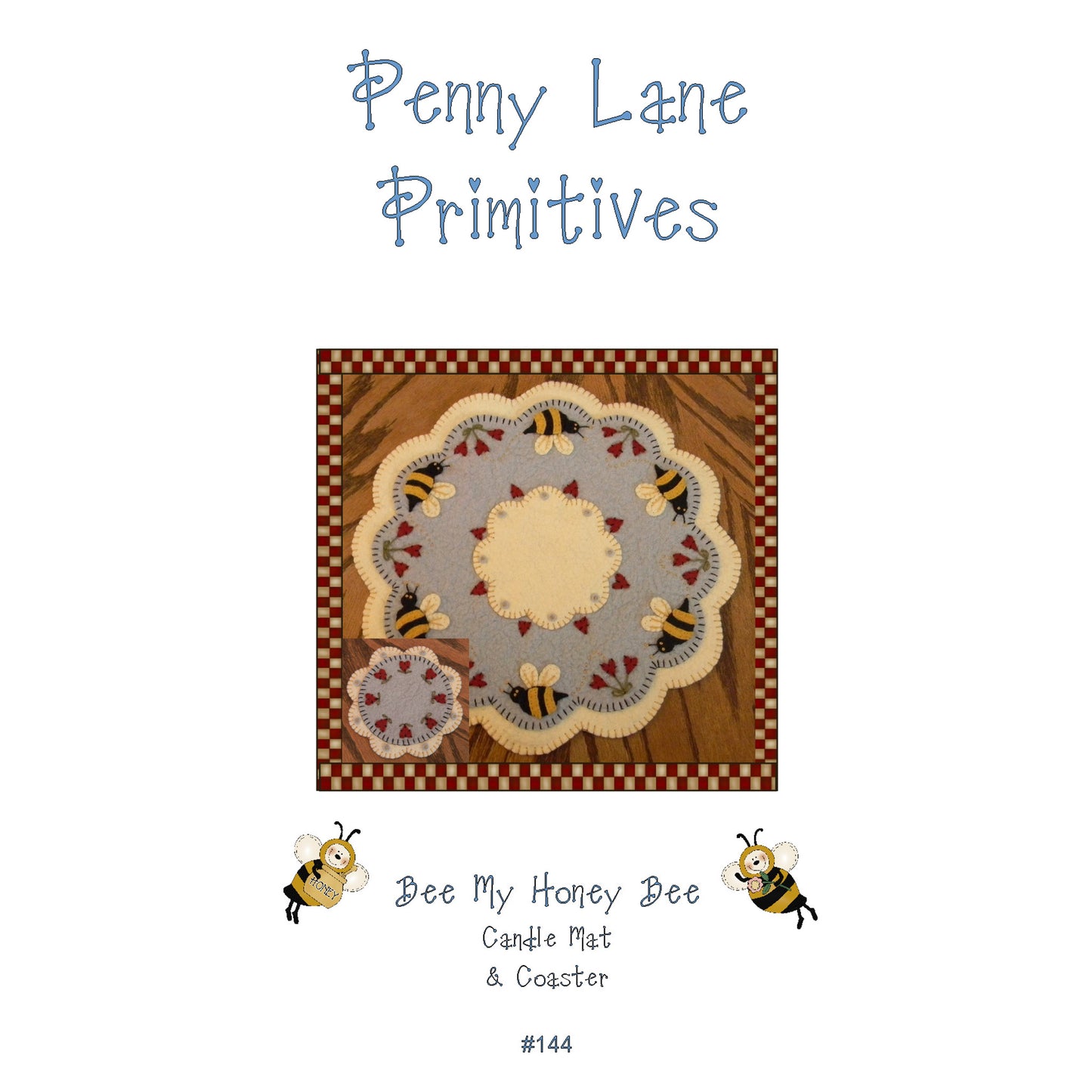Bee My Honey Bee Penny Rug Candle Mat with Coaster PLP-144e - Downloadable Pattern