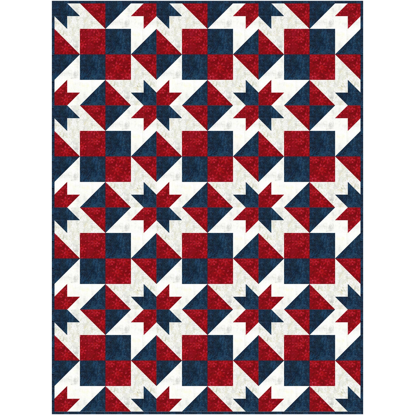 A beautiful star quilt in traditional red and blue. Quilts of Valor sizing! Quilt finishes at 60" x 80".