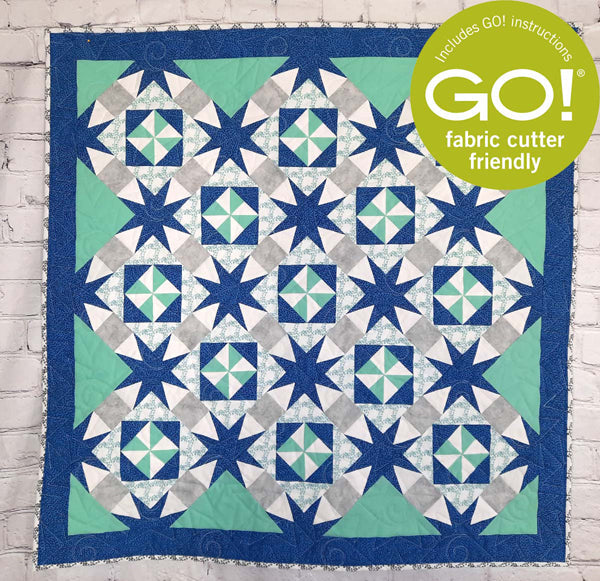 Accuquilt friendly quilt pattern. Quilt can be made with the 6", 8" and 12" QUBE sets and 2" Triangle in a Square die from Accuquilt, rotary cutting provided for all.