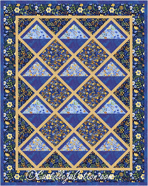 Blooming Blue Flowers Quilt CJC-58102e - Downloadable Pattern