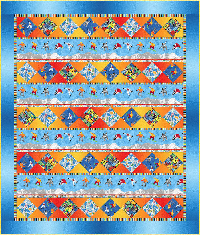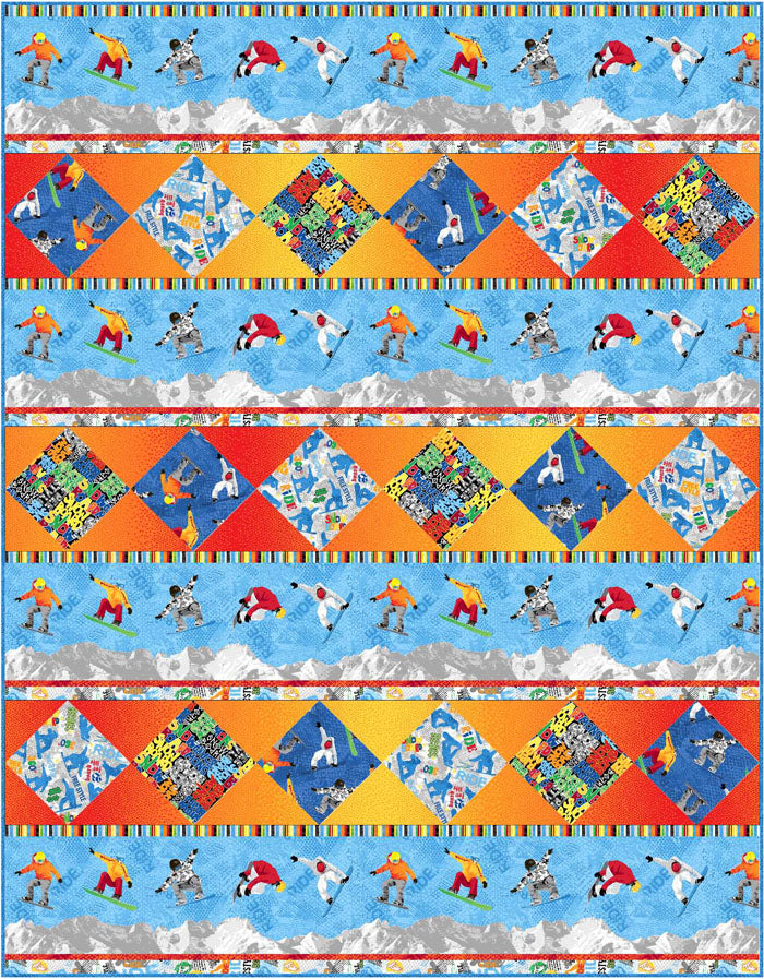 Let the fabrics do the work in this horizontal strip quilt pattern. Choose a fun lengthwise border print and an ombre print for visual interest.