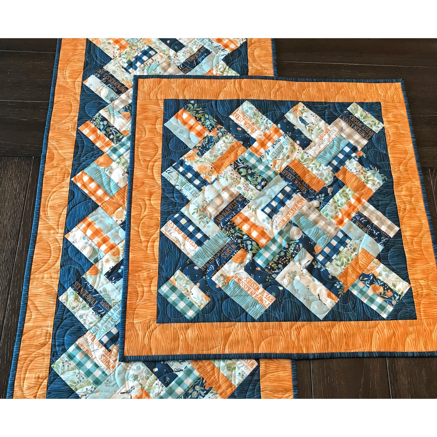 Fun scrap buster or charm pack pattern makes a table runner and/or topper. Would go with any décor.