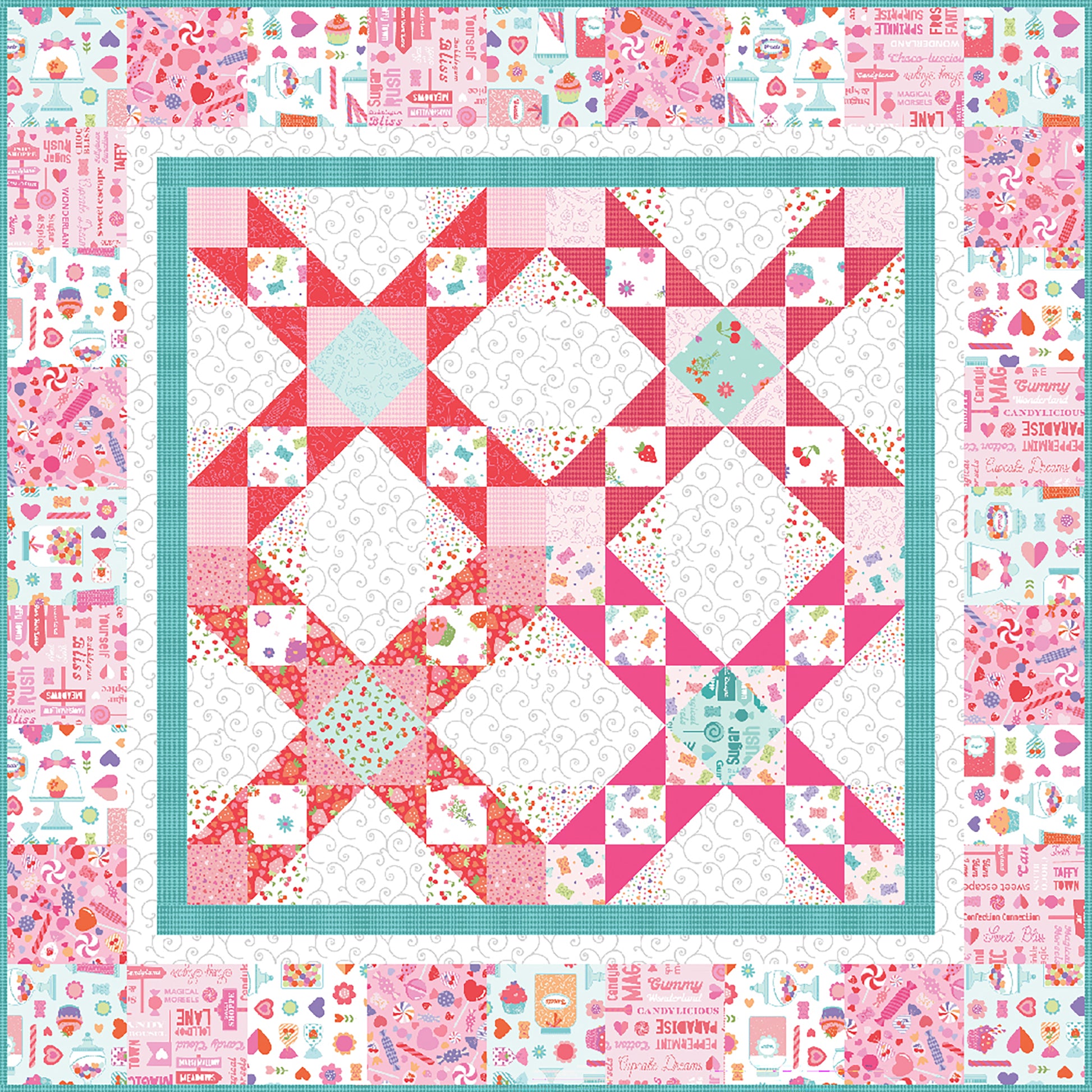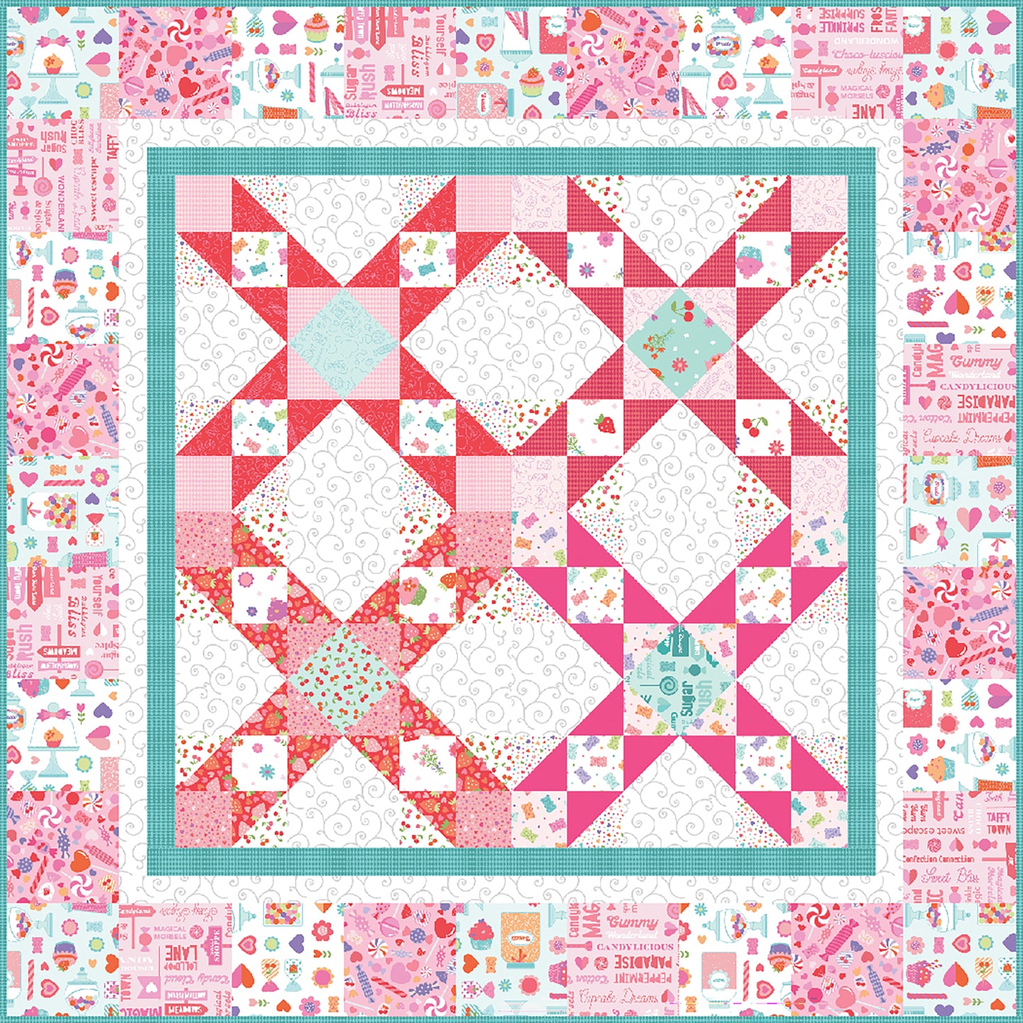 Bright and fun Candy Stars quilt pattern by Heidi Pridemore of The Whimsical Workshop. Fabric shown in the sample quilt is "Sweet Shoppe" fabric line from Maywood Studio.