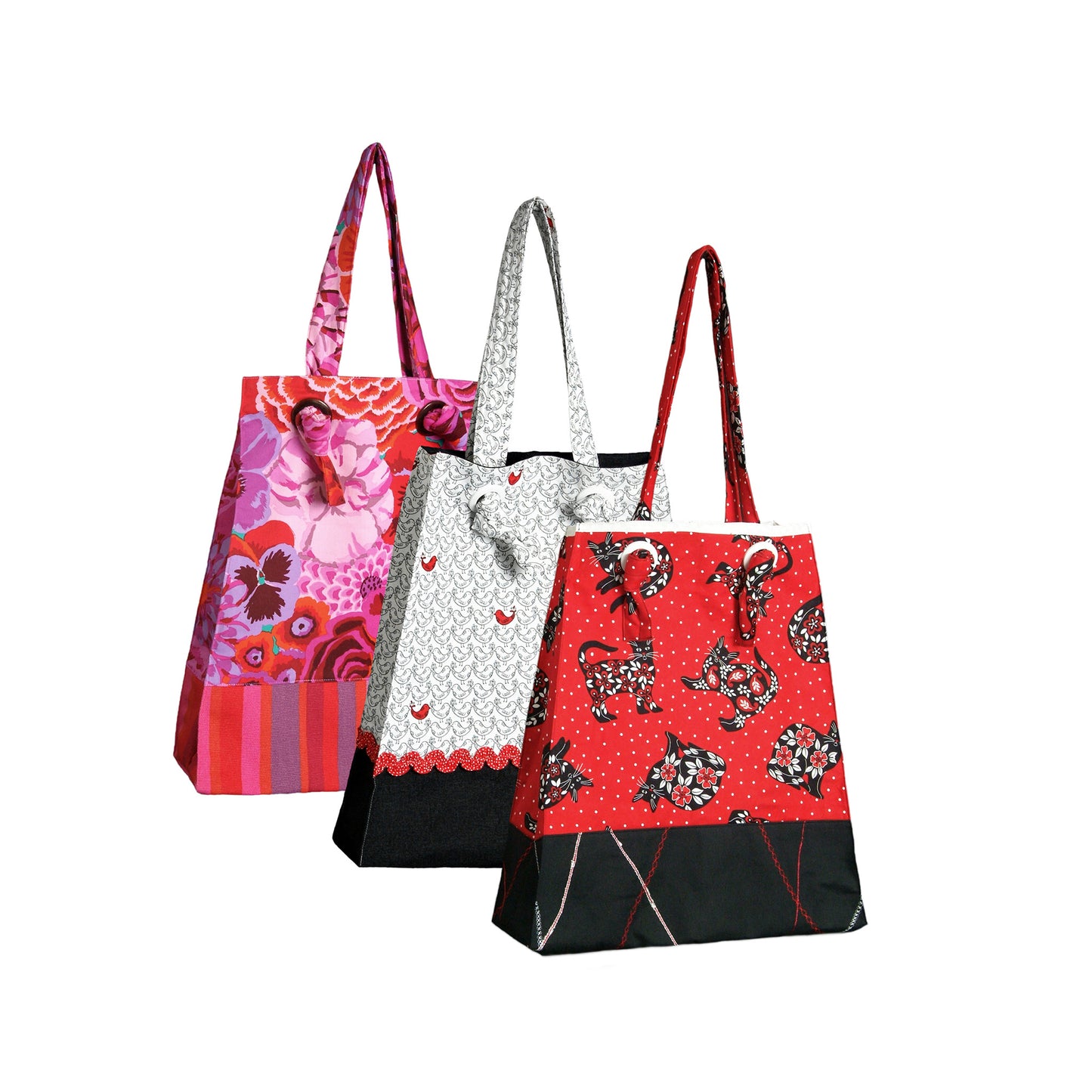 This tailored bag is easy to sew and has inside pockets. Instructions for couching fiber to fabric are also included.