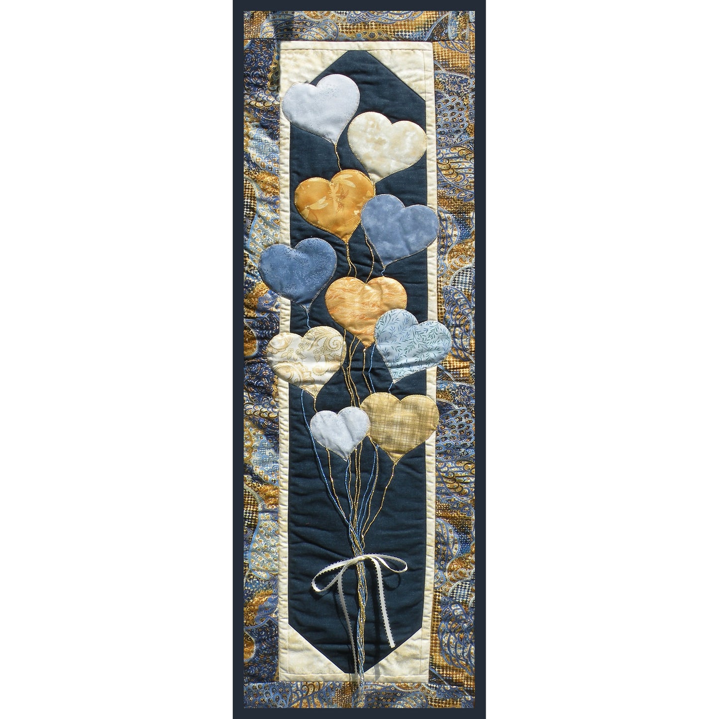 Celebrate life and love with a balloon bouquet. Barb Sackel's "Celebration of Love Skinnie" quilt pattern is a great idea for marking a special occasion like birthday or anniversary. You may use family photos for a personal touch. One thing is for sure; an applique balloon bouquet adds home to any house. This quilt pattern is AccuQuilt GO! compatible and contains optional instructions for its use.