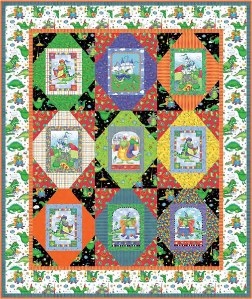 Let pre-printed rectangular blocks, such as those from Northcott's Magical Dragons collection, take center stage in this novel twist on square-in-a-square quilt pattern.