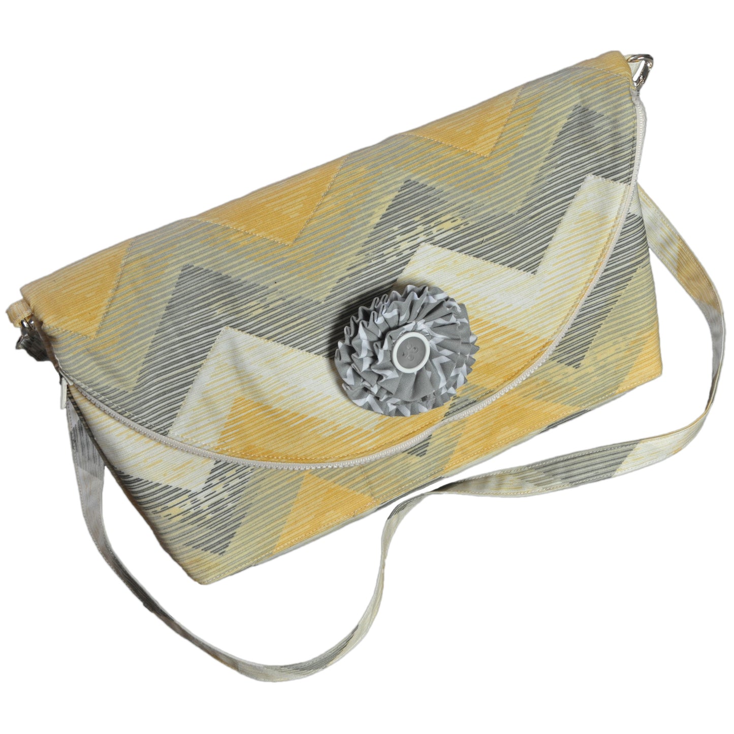 This fold over clutch pattern has a secure zipper compartment and an easy to reach outer pocket. A removable strap makes it versatile!