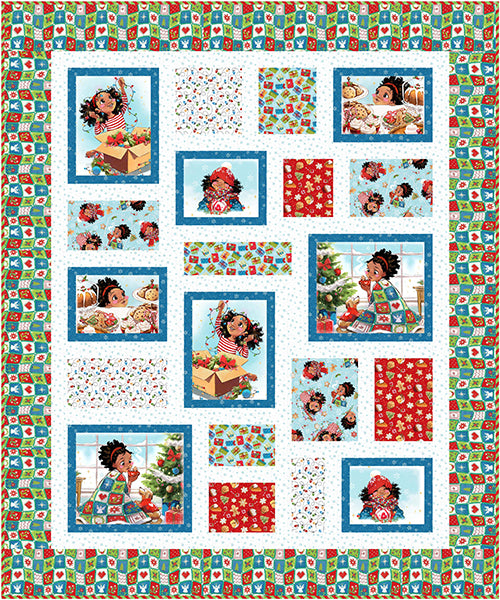 Enjoy cutting apart a fabric panel with this quilt pattern. Sample features Northcott’s Christmas Wonder collection.
