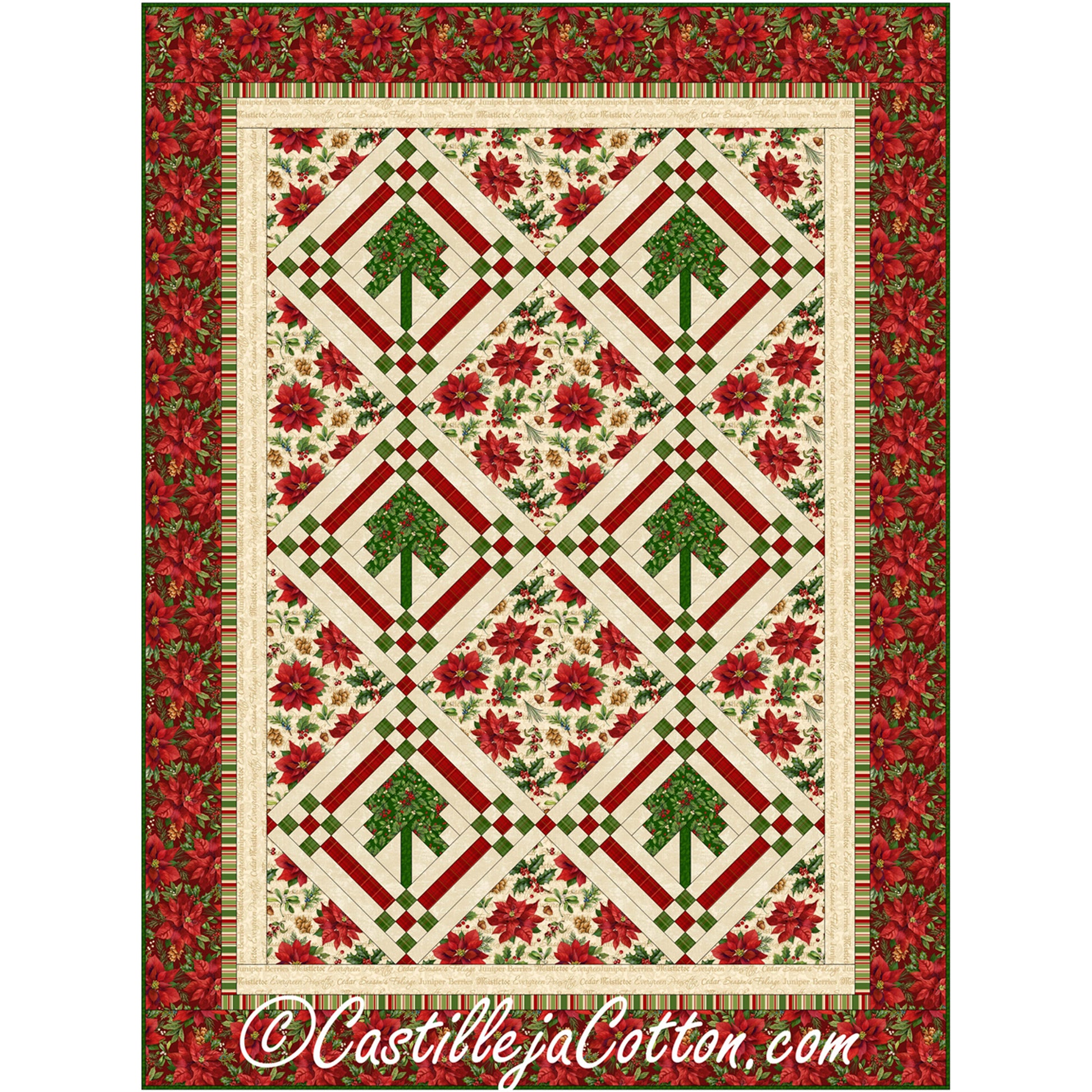 Diagonal set, pieced tree blocks. Pieced Christmas quilt pattern.Fabric shown in the sample quilt is Northcott Fabrics Old Time Christmas.