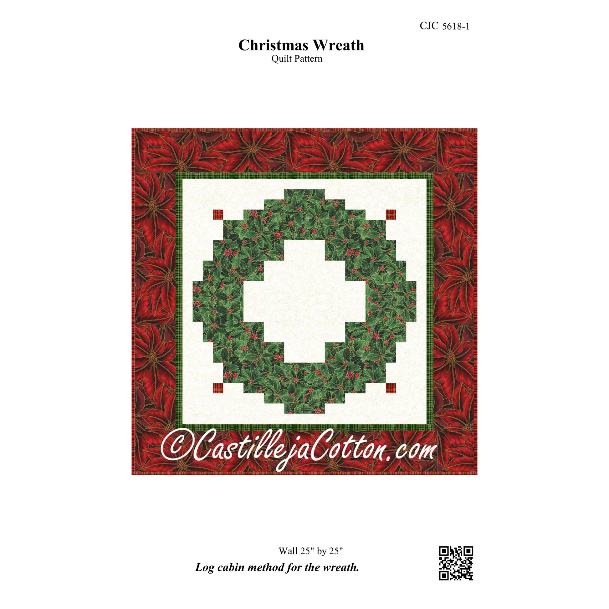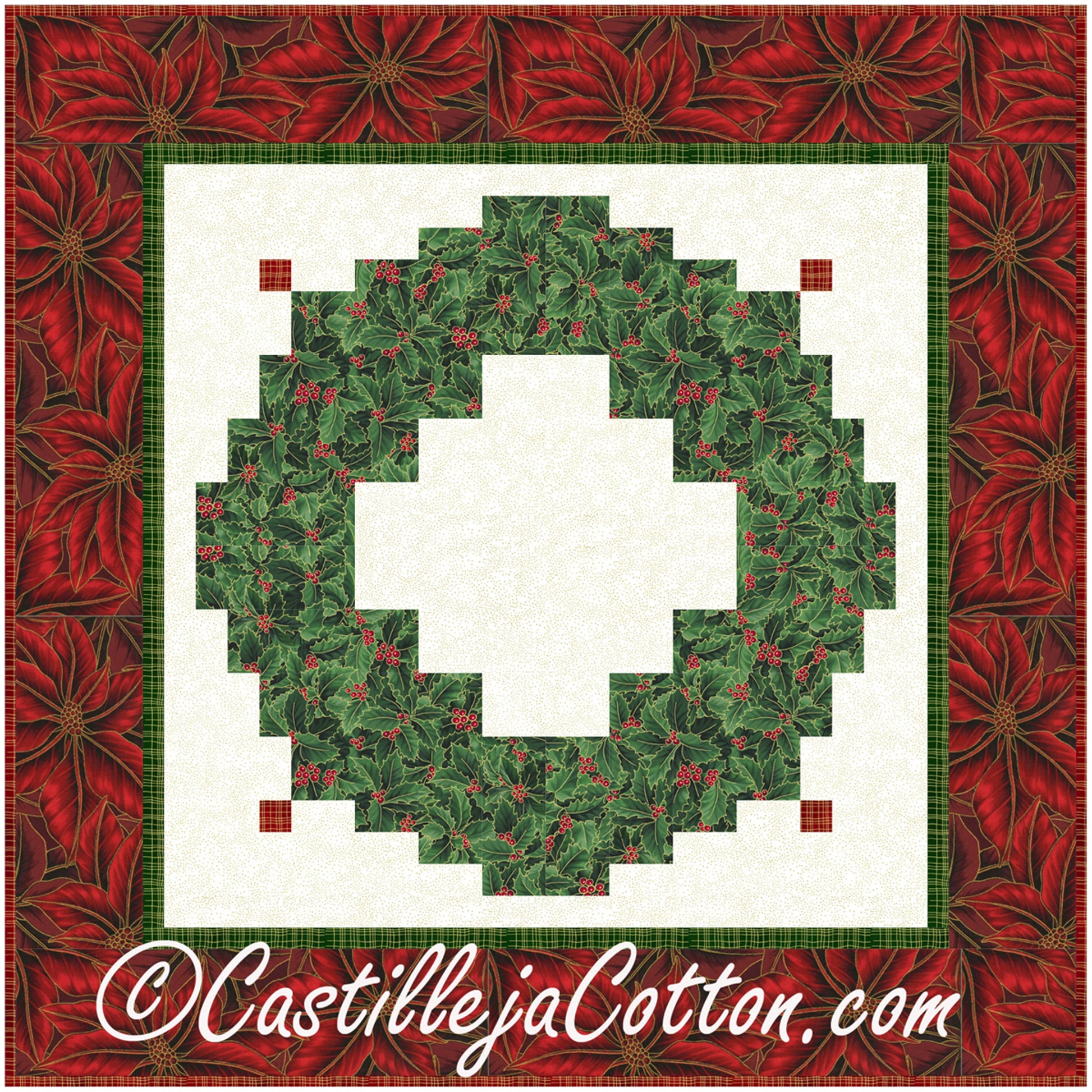 Log cabin method for the wreath. Pieced Christmas wall hanging quilt pattern.
