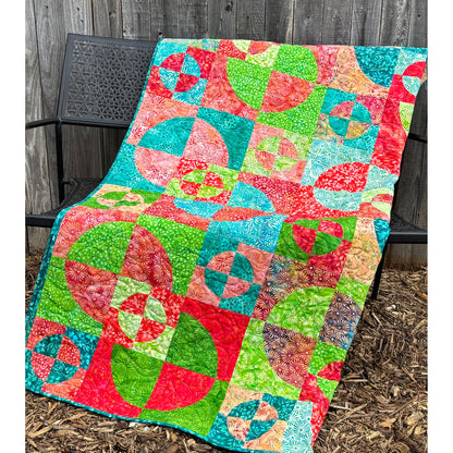 Circle Dance quilt pattern uses two sizes of the Drunkard’s Path quilt block to make this striking quilt. Perfect to show off your favorite fabric collection and a fun scrappy quilt as well! Paper templates are included. The pattern is also compatible with the Drunkard’s Path dies from Accuquilt (Compatible with Accuquilt dies 55034 and 55070).