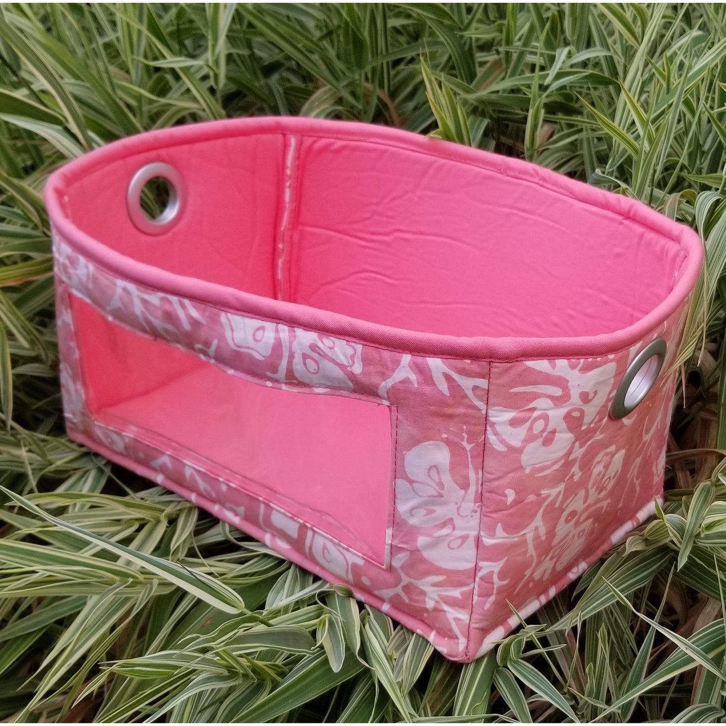 Storage basket that can be made to match any decor. Clear window so that you can see what is inside. Great for organizing your craft room, closets, or even your children's toys.