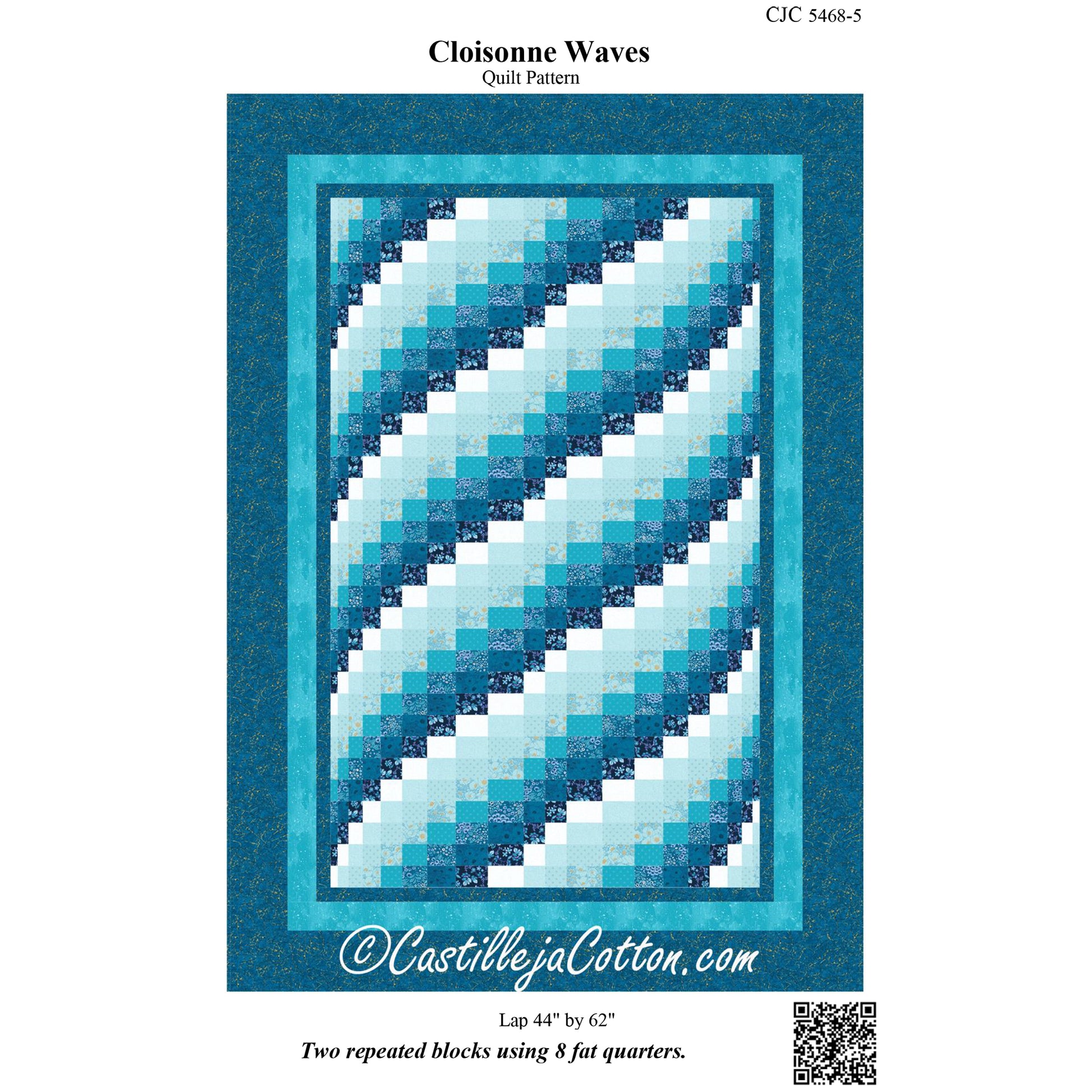 Fabric shown in the sample quilt is Connecting Threads Cloisonne. Colors: teal, white