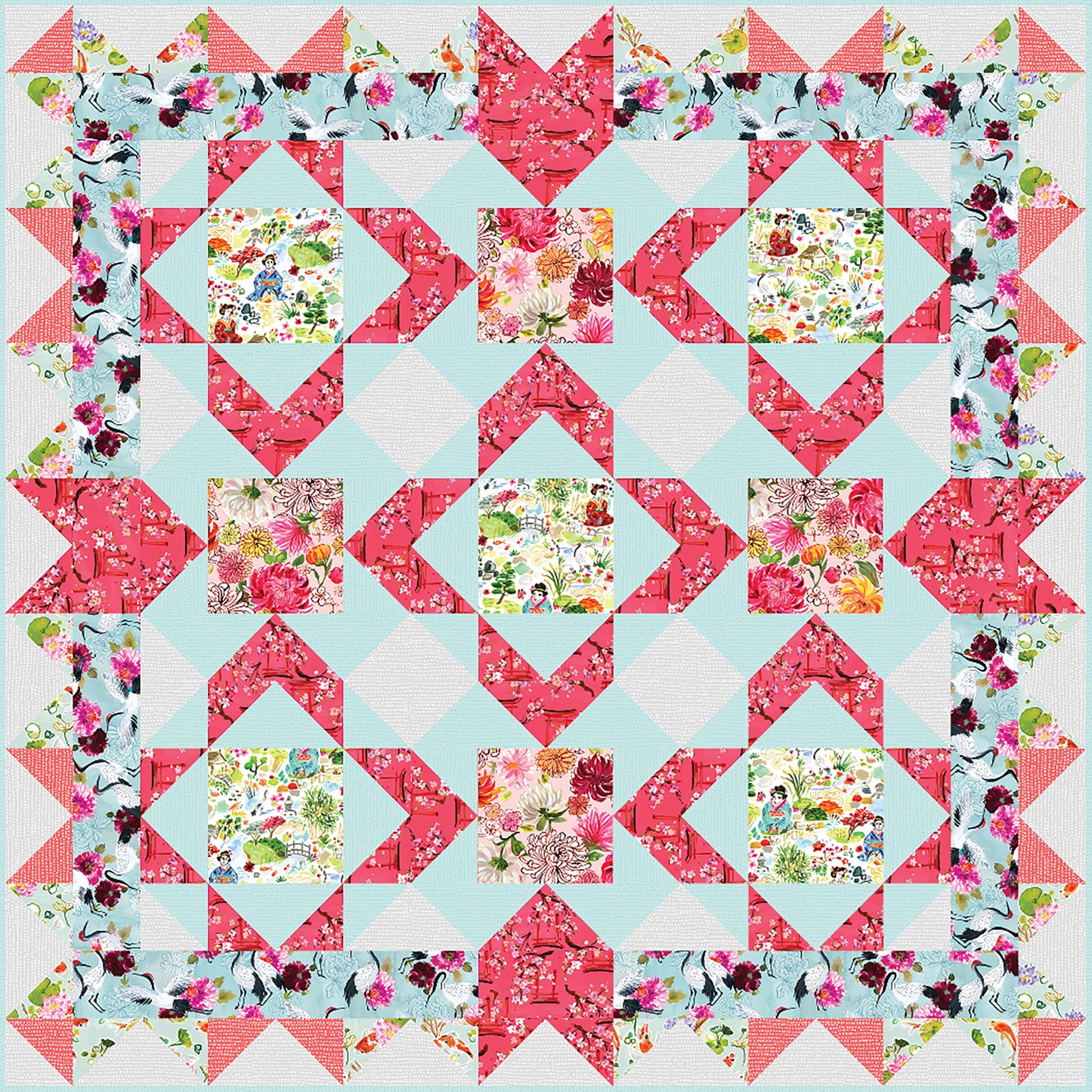 Quilt image features the Tokyo Dreams fabric line from Dear Stella.