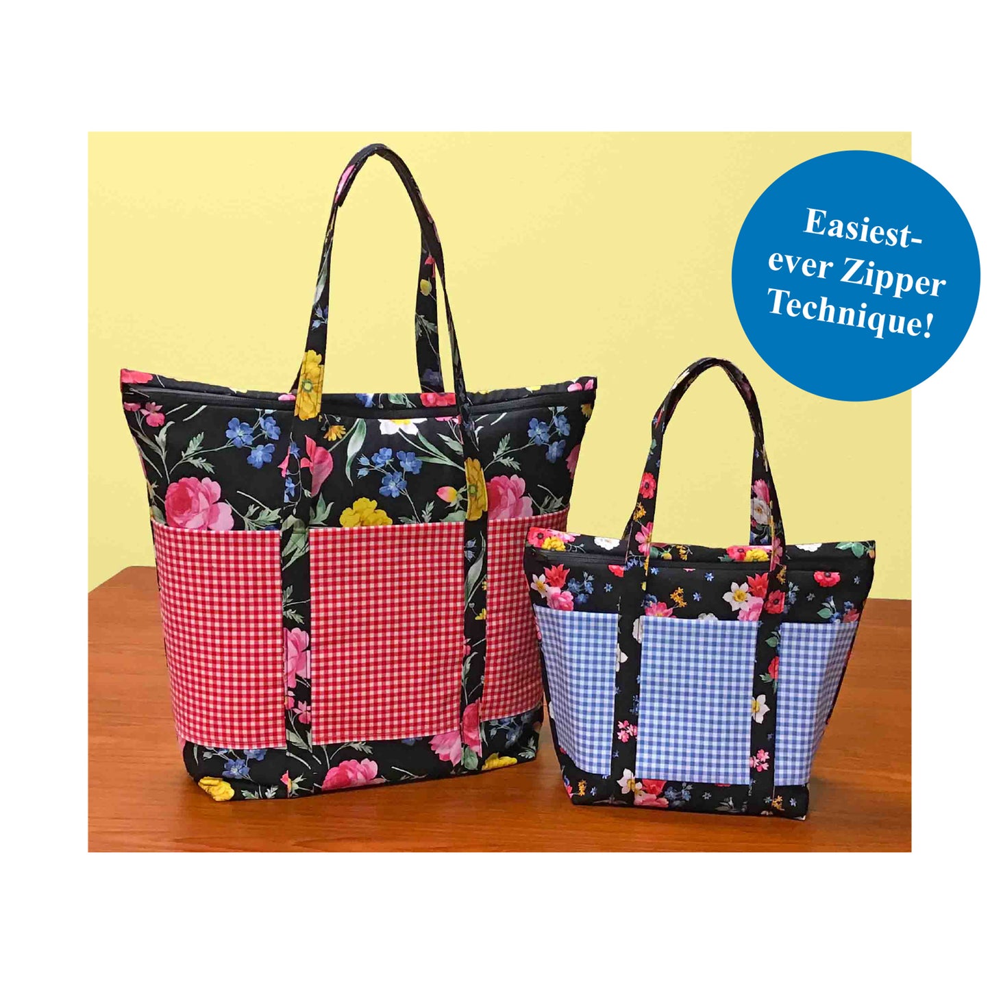 Sew-totes-to-go! The sewing is streamlined with simple pattern shapes made from a few rectangles and our Easiest-ever Zipper Technique! Stitch a stylish Cooler Grocery Tote for an afternoon picnic or to pick up a few groceries. Make daily lunchtime enjoyable when you create the Insulated Lunch Tote. Included in the pattern are Classic Timesaving Tips by Nancy Zieman.