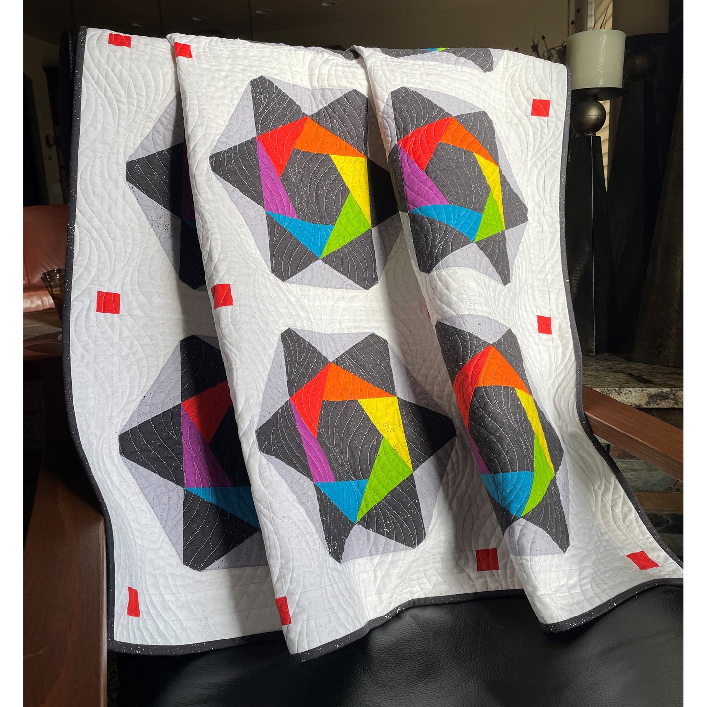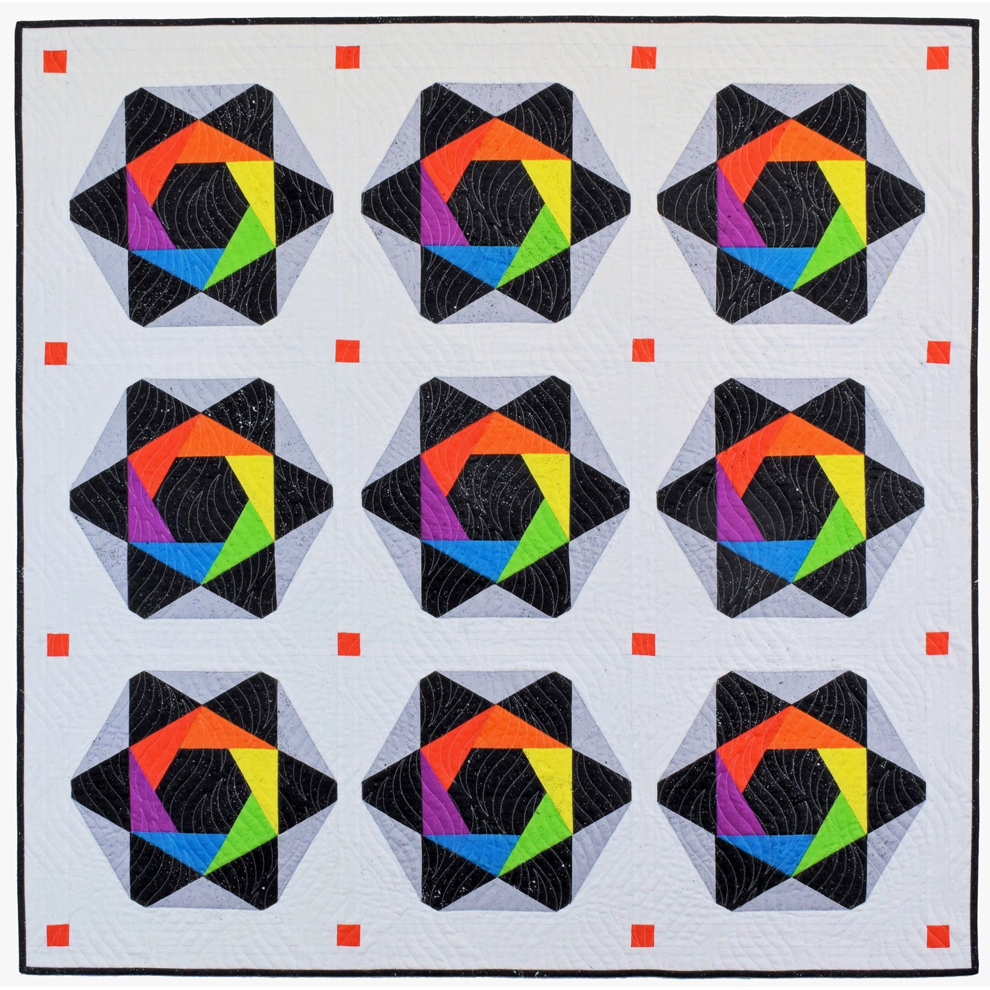 Cosmic Rainbow is a vibrant wall hanging that will brighten up any room. Hexagons, triangles and trapezoids combine to make a pleasing shape that is fun to put together.