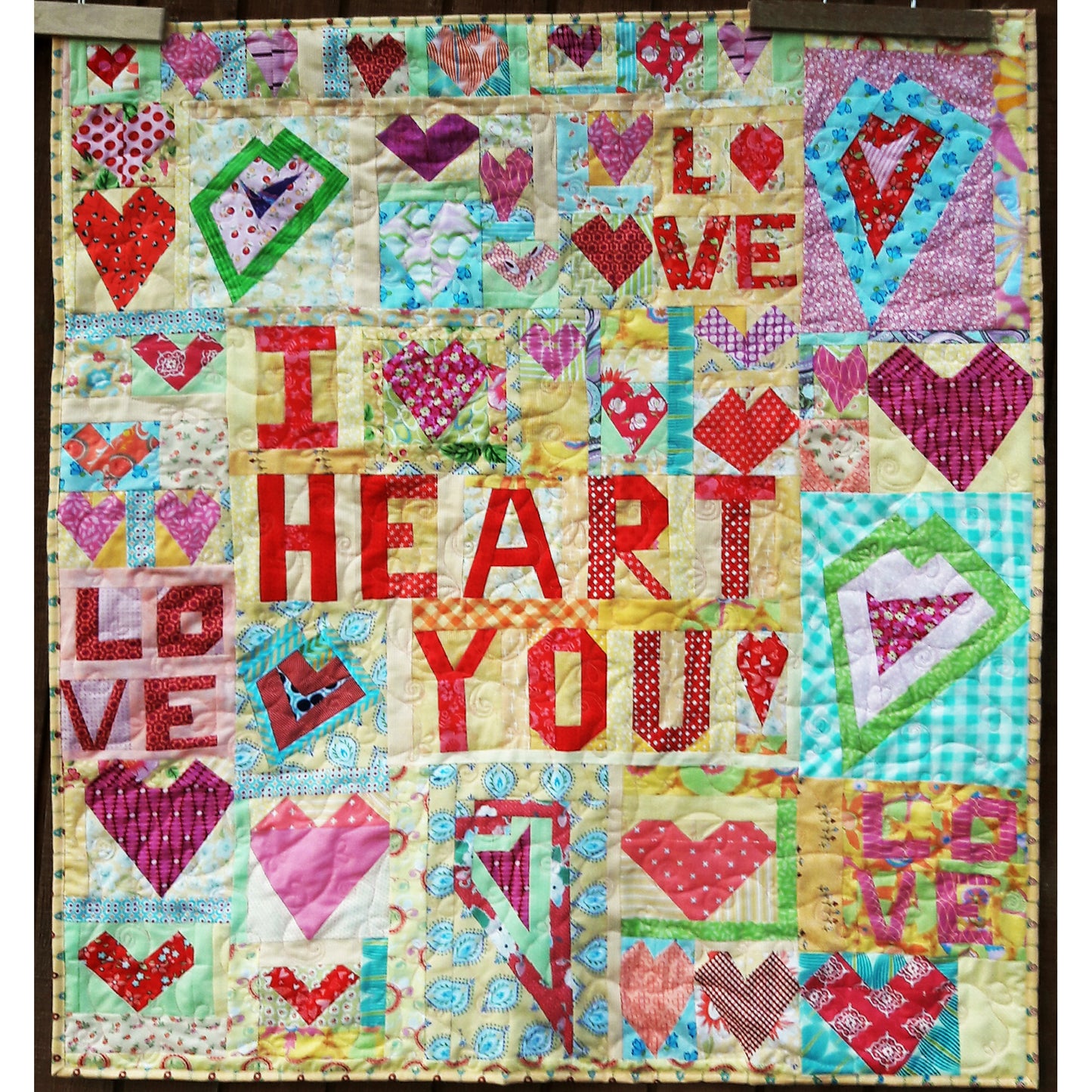 This scrap quilt pattern uses an improvisational method to make three different hearts, free form letters and then combine them all in a one of a kind quilt.