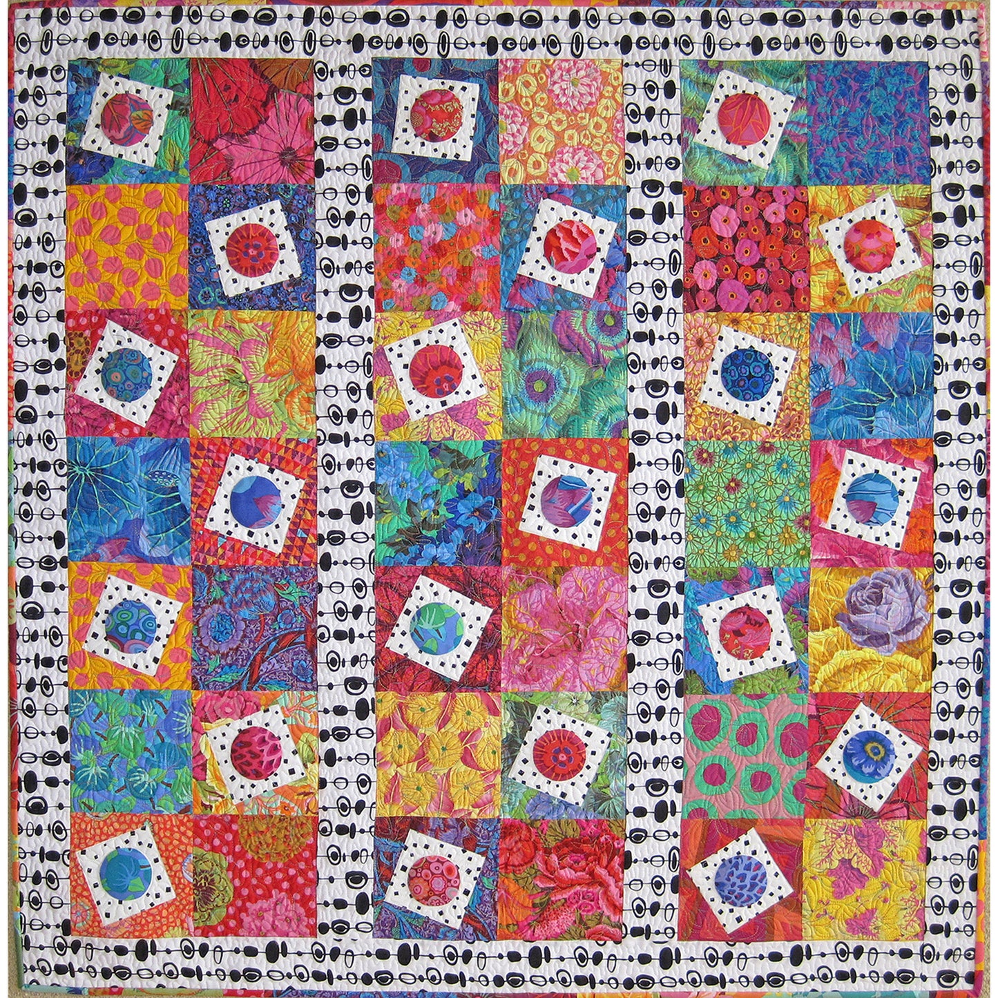 Dancing In Circles is a fun scrap quilt! It was designed by Susan Mayer of Straight to the Point fame. The colorful pattern includes binding instructions.