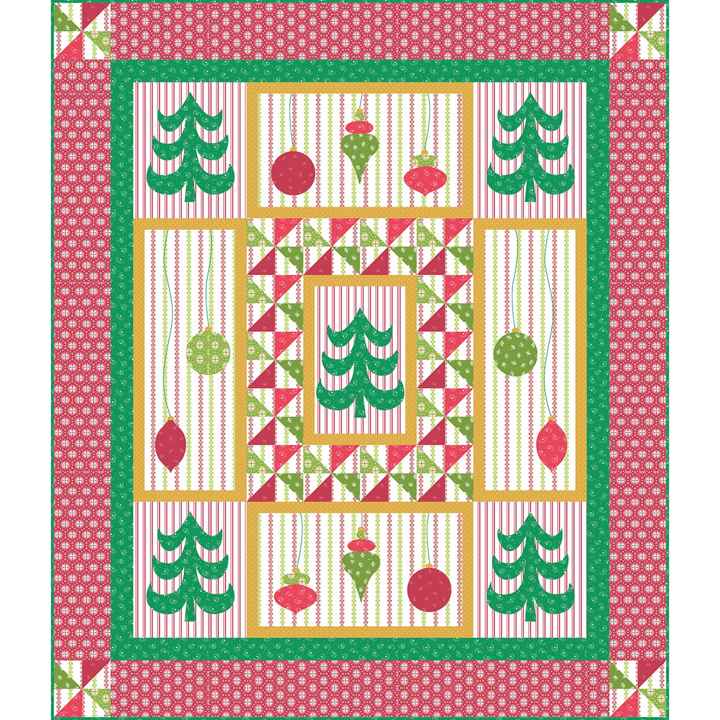 What a fun quilt pattern for the holidays. Have fun changing up fabric colors for the ornaments and trees.