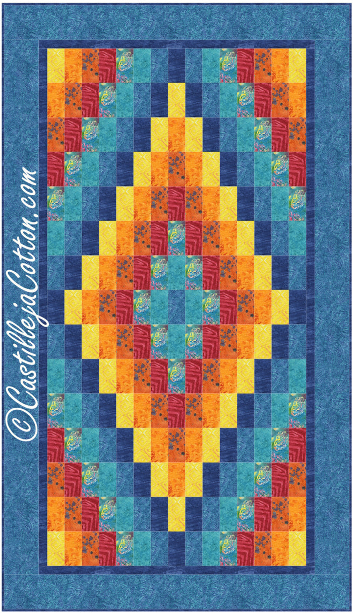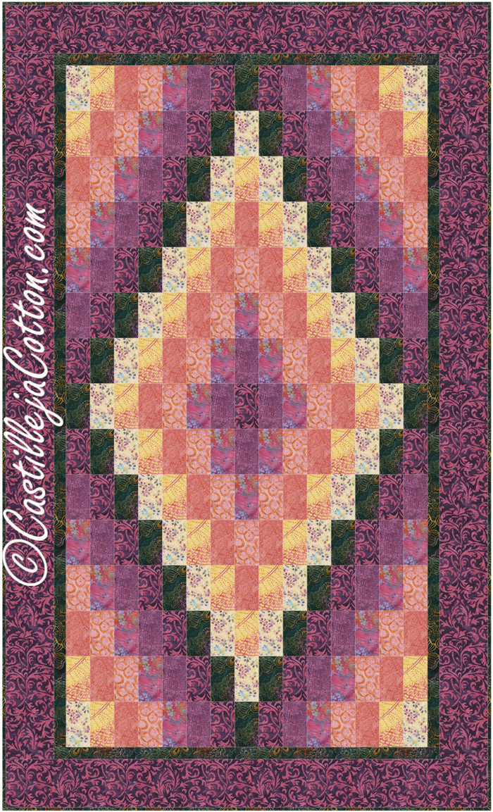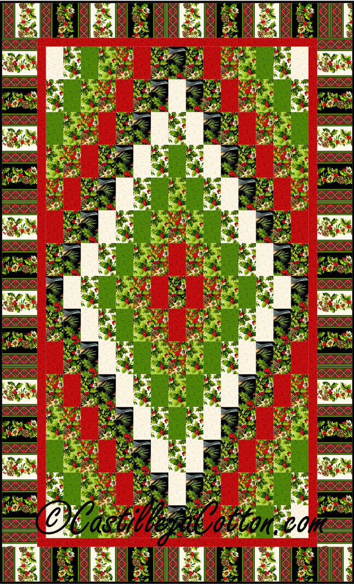 This quilt pattern is easy to make using stripped piecing. Fat quarter friendly. Fabric lines shown are Tonga Pinata by Timeless Treasures and A Christmas Story, Pink Warrior & Home for the Holidays, all by Deborah Edwards for Northcott.