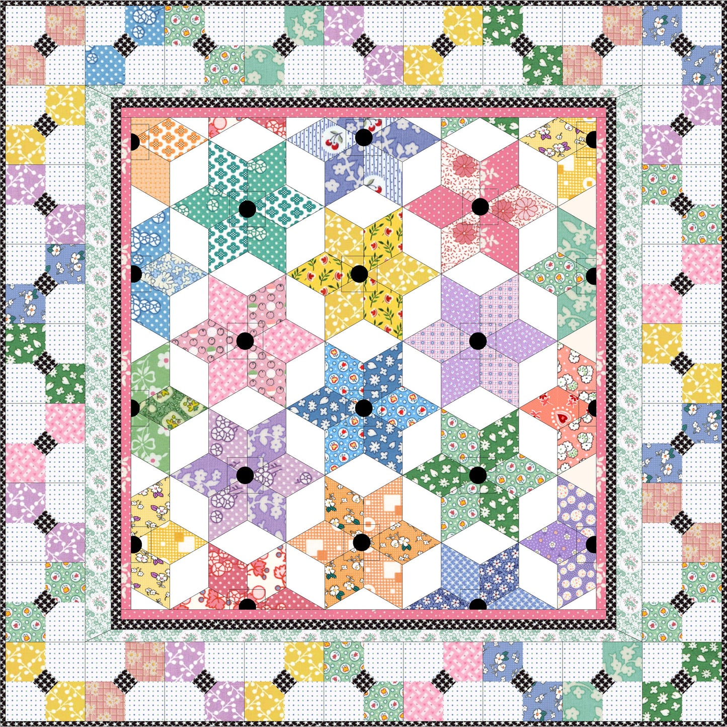 Pieced quilt pattern. No "Set-In" seams. Jelly roll and charm pack friendly quilt pattern.