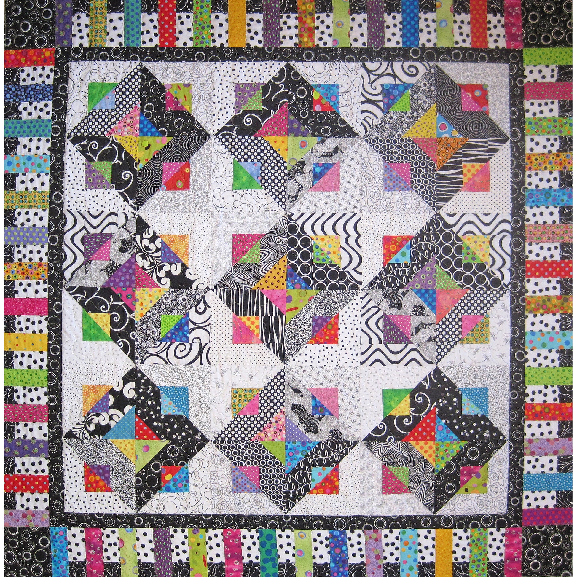 The Dotsville quilt pattern is another in Susan Mayer's Black, White, and Bright Series of quilts. After the blocks are made, make a fun binding from your leftover dot scraps.