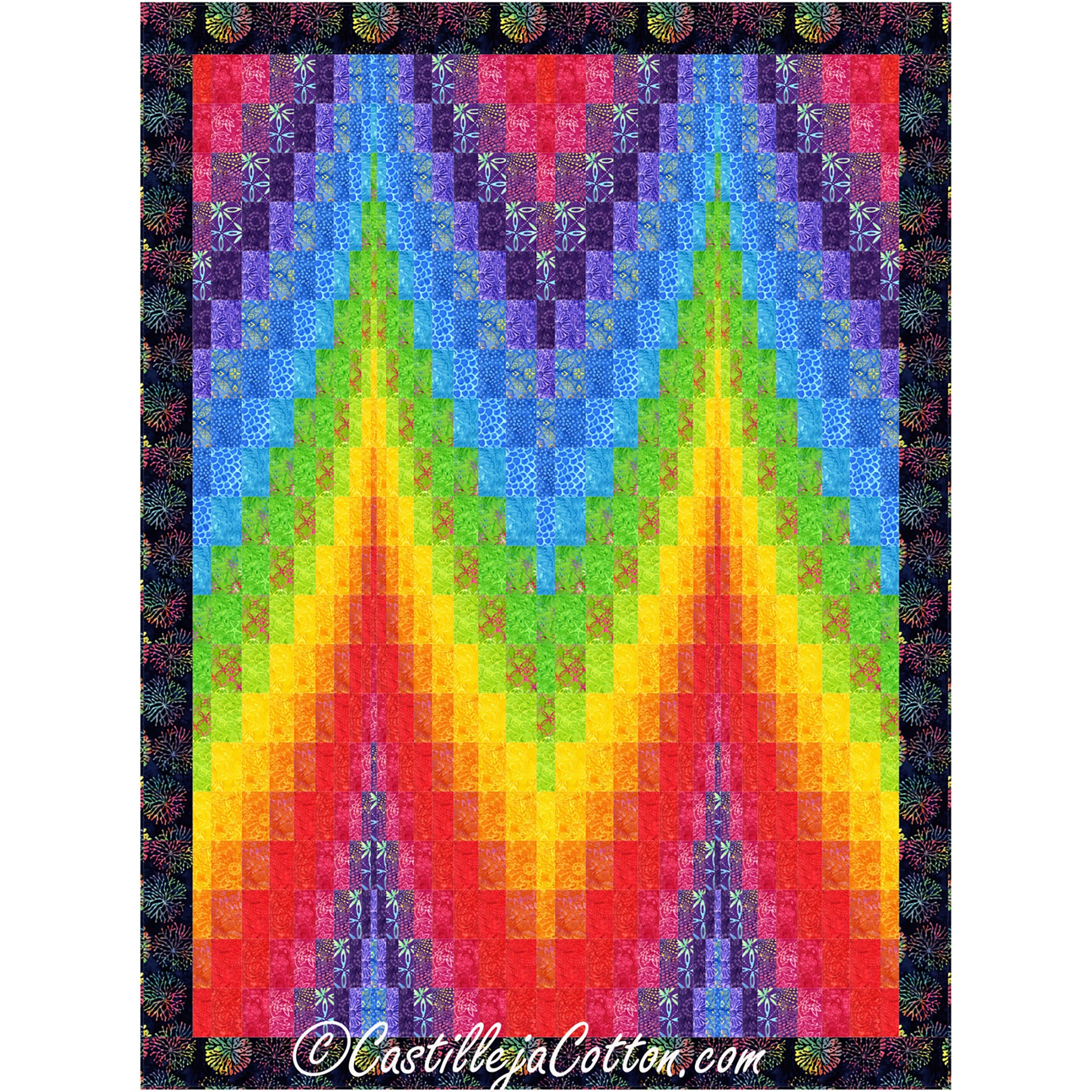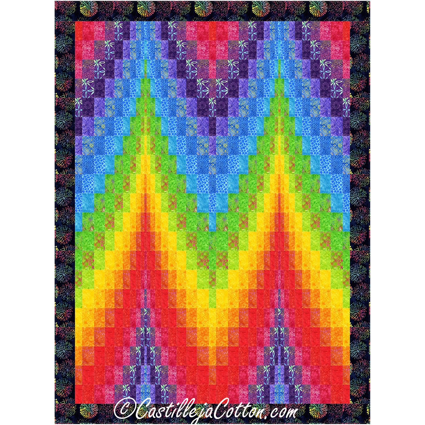 Double Peaks Happy quilt pattern is an easy to make bargello quilt using strip piecing technique.