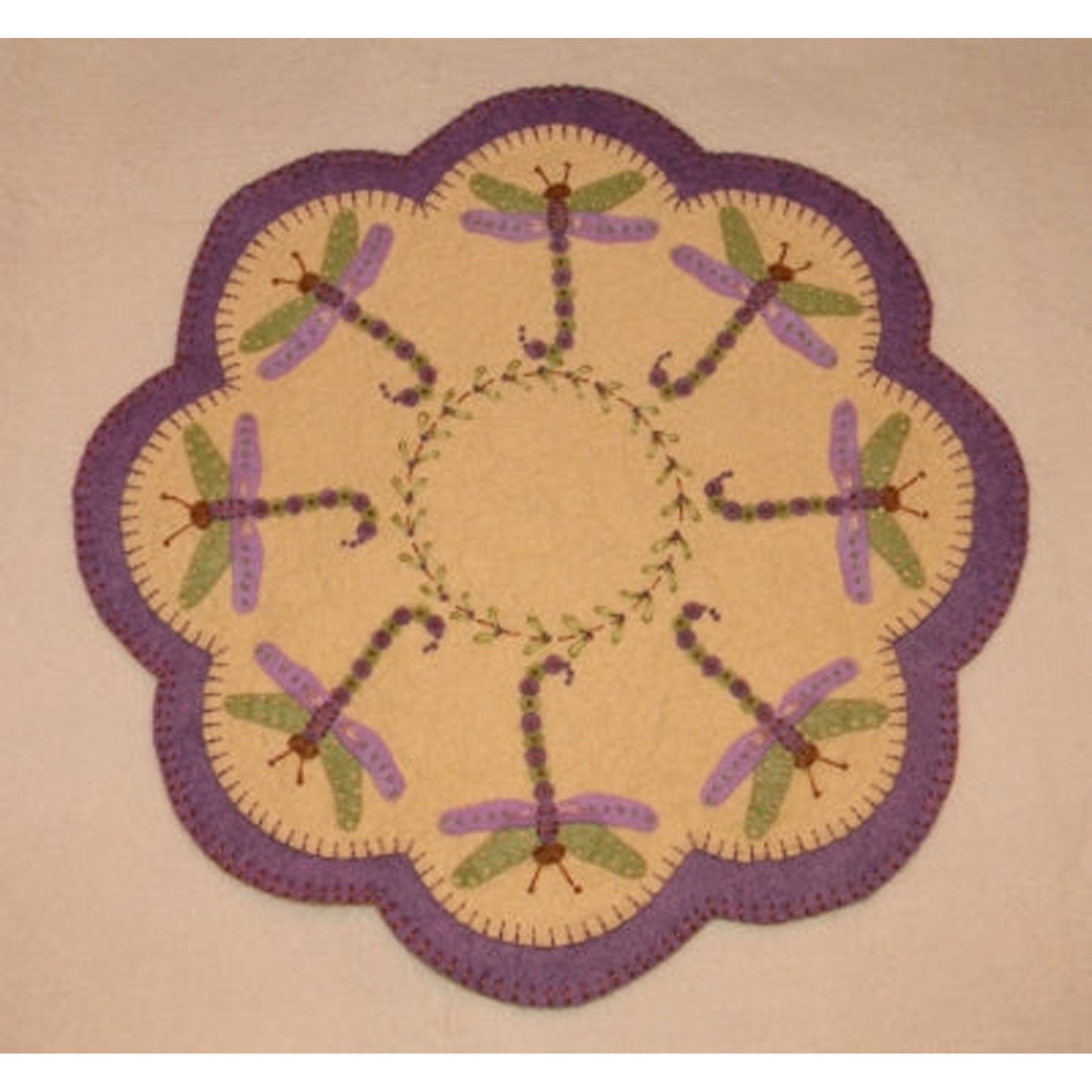 Dragonflies Penny Rug Candle Mat PLP-142e - Downloadable Pattern