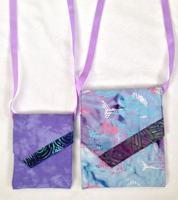 A practical little bag that holds the essentials (cell phone, glasses, keys, small wallet, tissues, etc...) for a day out at a quilt show, concert or festival.