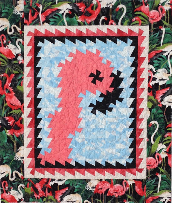 Featuring a friendly flamingo, Flo Bo is a twister ruler quilt pattern. Previous experience with with twister rulers is recommended.
