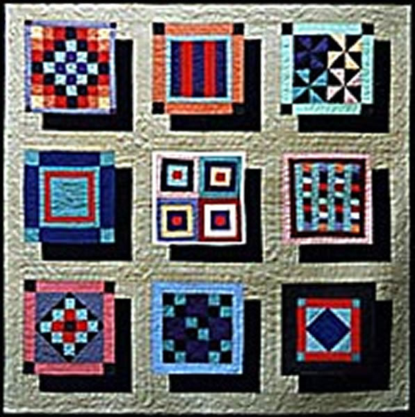 The Floating Amish Sampler pattern is designed to allow you to create a quilt in which the mini-Amish blocks appear to float off the surface. The pattern includes instructions for 14 mini-Amish blocks - choose the 9 which you like the best for your quilt. All piecing is straight lined, and you will use a rotary cutter and plastic ruler. You will not need to use any templates. Included in the pattern are outlines of each mini-Amish block which you can color to try out different color schemes. Four pages of QuiltWoman generic finishing instructions are in the pattern.