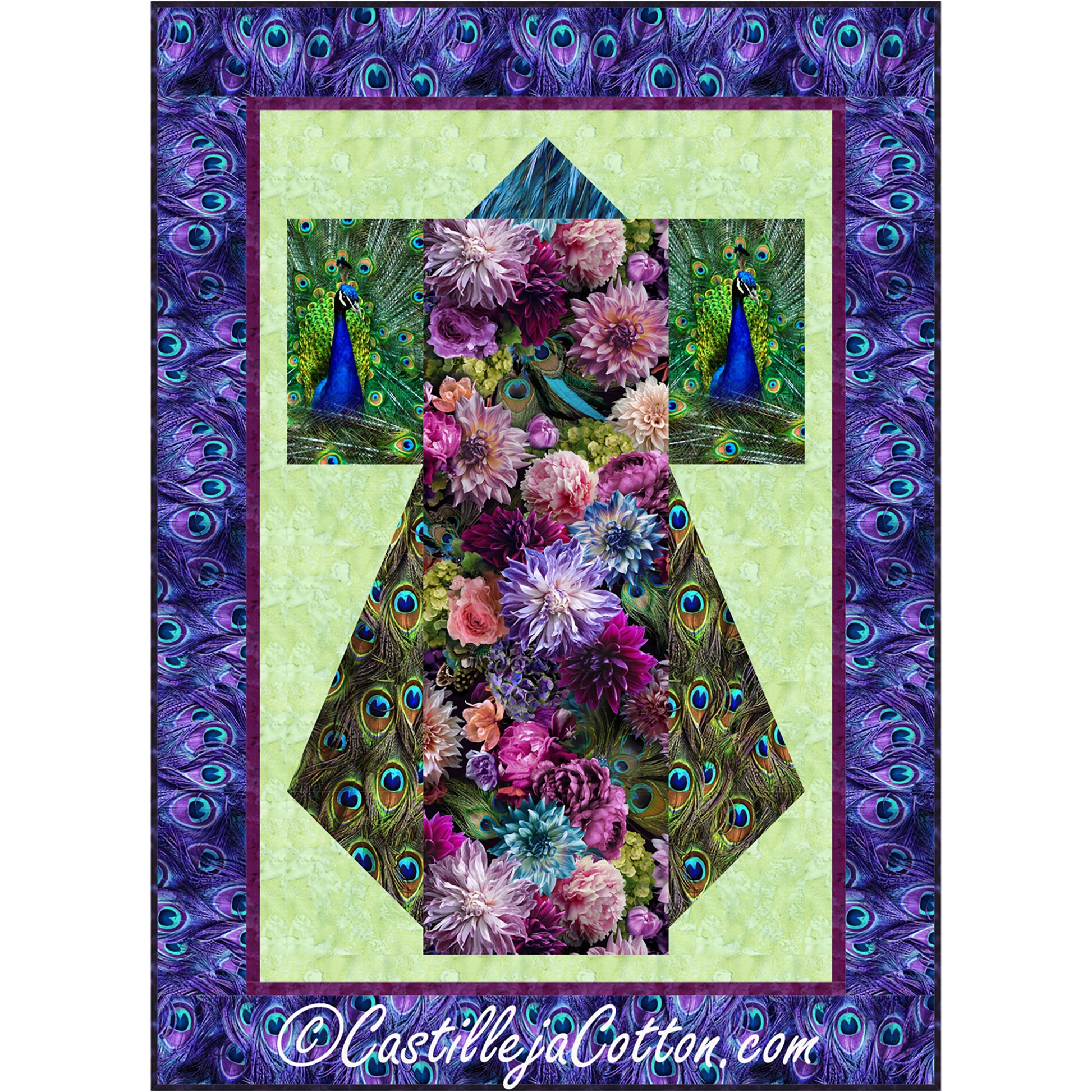 Fabric shown in the sample quilt is Hoffman CA Proud as a Peacock.